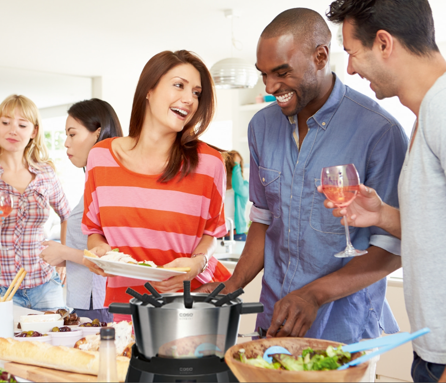 - Caso FonDue không chỉ lý tưởng cho những buổi tối ấm cúng mà còn là nơi tổ chức những bữa tiệc với nhiều khách mời 2 in 1: FonDue & bếp bàn di động