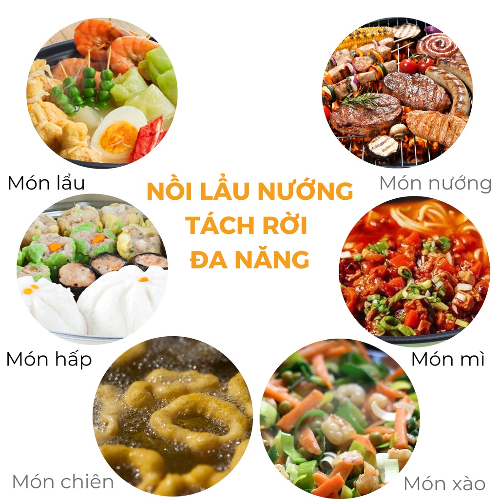 Tính năng nổi bật: Kết hợp 2 trong 1: lẩu + hấp tiện lợi Dung tích lớn 16L (nồi lẩu 4.5L) – Phù hợp gia đình đông người Công suất 1.600W – Nấu nhanh, giữ