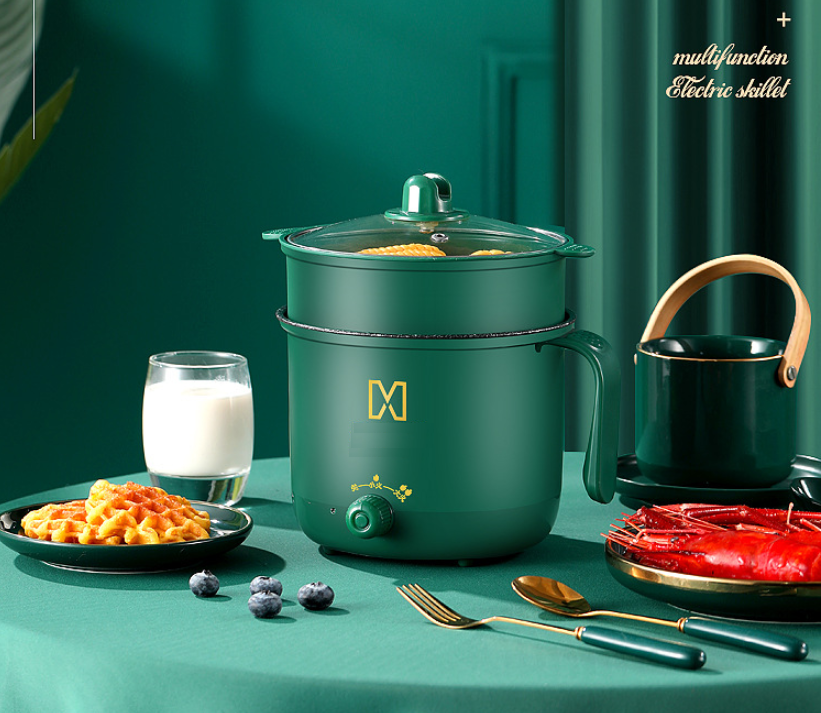 Nồi lẩu điện mini, Ca nấu mì, Nồi đa năng nấu cơm có tay cầm 1,8L, 2 nấc nhiệt, Kèm giá hấp inox