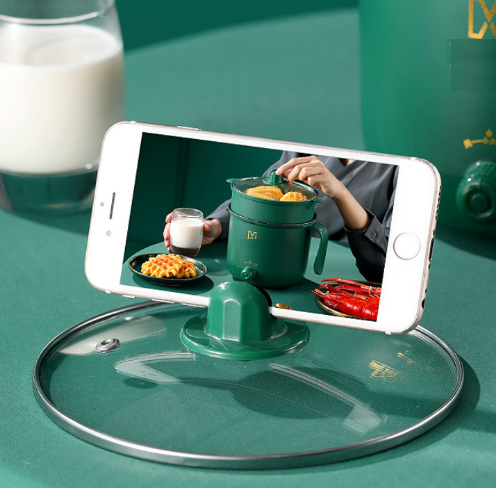 Nồi lẩu mini đa năng 2 tầng Ca nấu mì điện núm xoay 2 nấc nhiệt Kèm giá hấp chịu nhiệt miDoctor