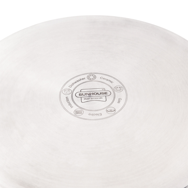 Bộ Nồi Inox 5 Đáy SUNHOUSE Đáy Từ SH781 16, 20, 24 cm *** LƯU Ý Nếu nấu trên bếp ga, hơi nóng của ga sẽ làm quai cầm không cách nhiệt được nên Quý