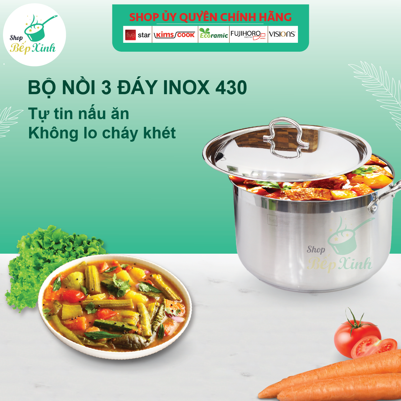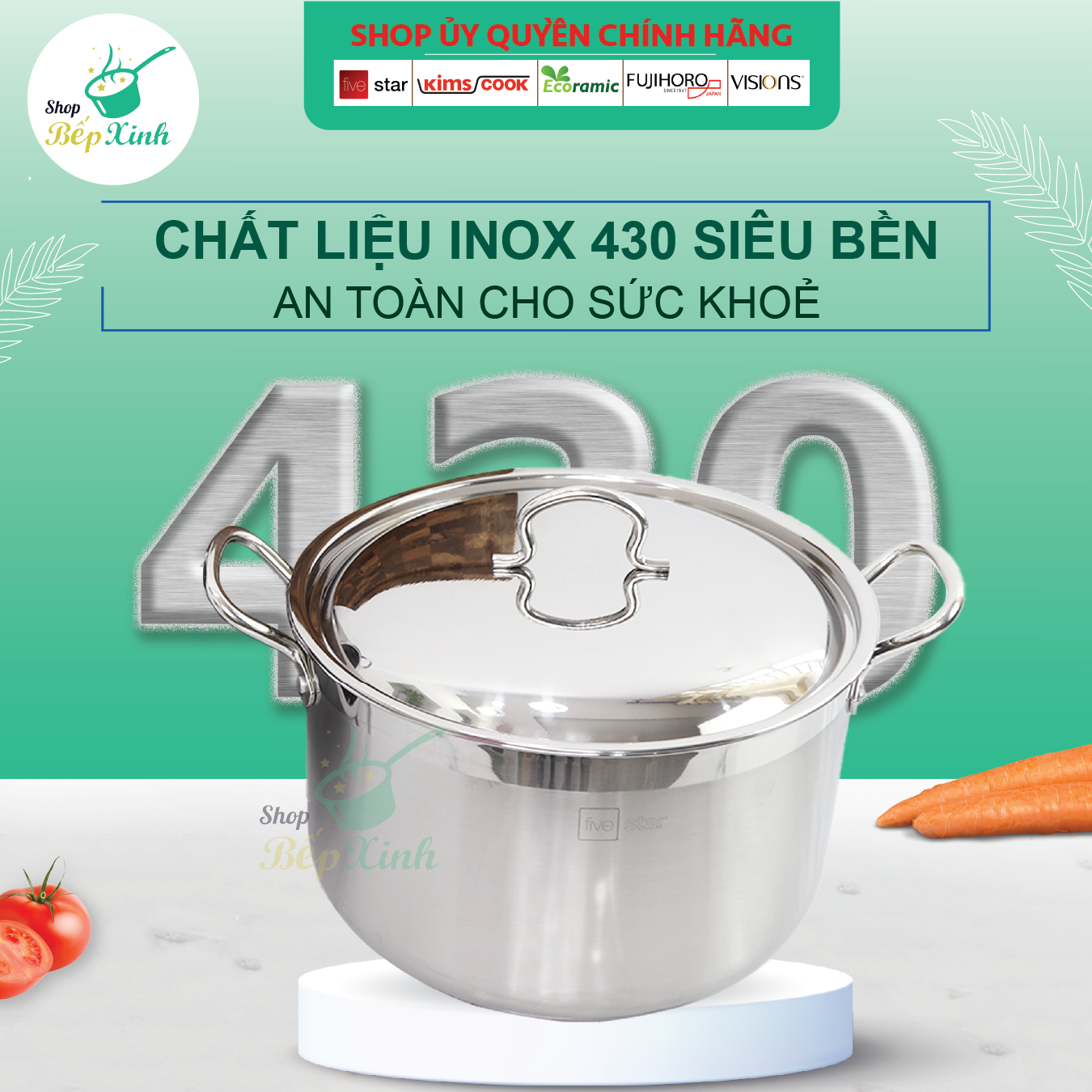 Nồi inox 430 chất lượng tốt, mẫu đơn giản, sang trọng bằng inox 430 độ bền cao, bóng sáng tự nhiên, hạn chế rỉ sét, sử dụng nấu ăn an toàn, không tiết chất độc