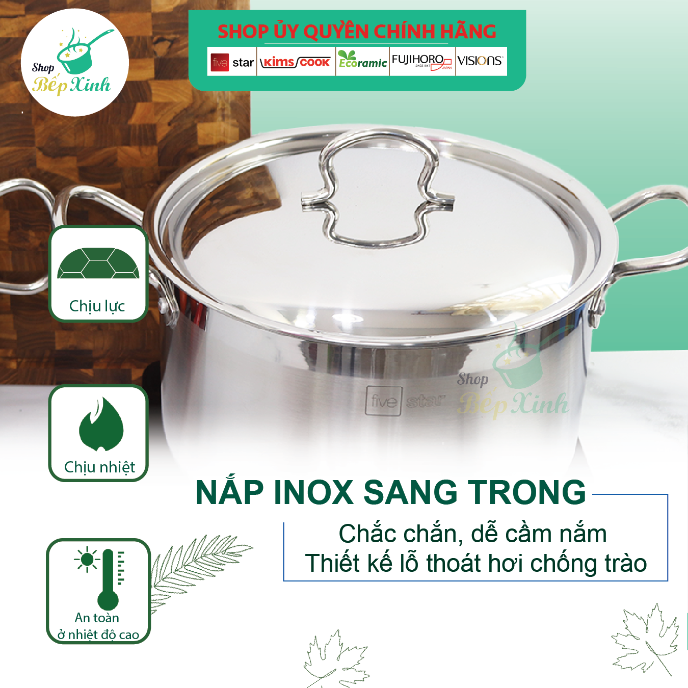Nồi luộc gà inox 3 đáy Fivestar - Dùng được trên bếp từ, Inox cao cấp an toàn cho sức khỏe