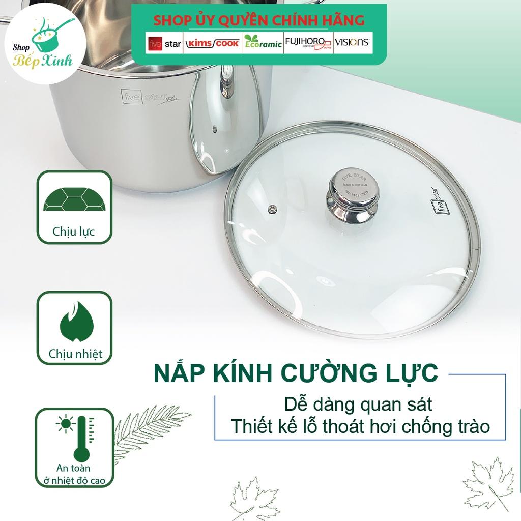 ✨Nồi luộc gà inox 304 cao cấp Fivestar Plus 28cm / 30cm nắp kính 3 đáy dùng được mọi loại bếp