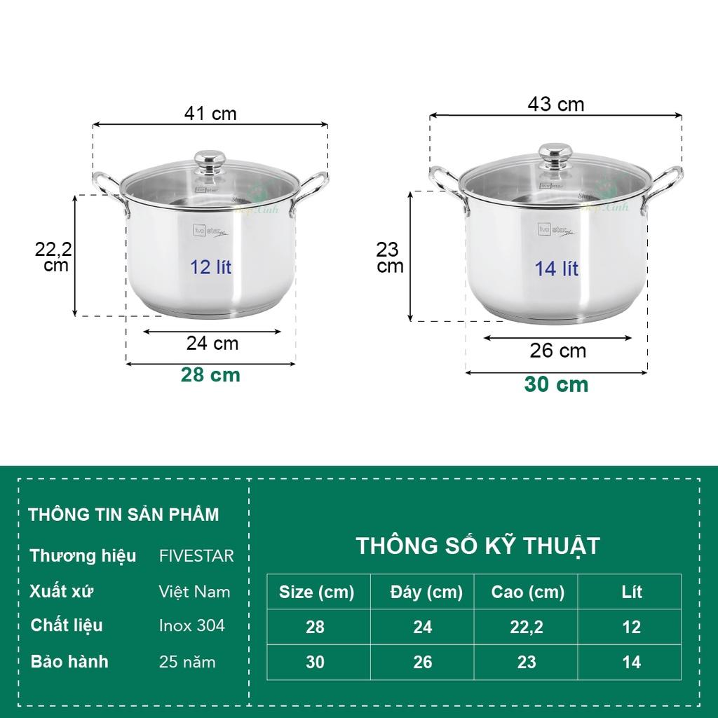Nồi luộc gà inox 304 Fivestar Plus sz 30cm thành cao 22cm zalo chốt đơn 0986588655