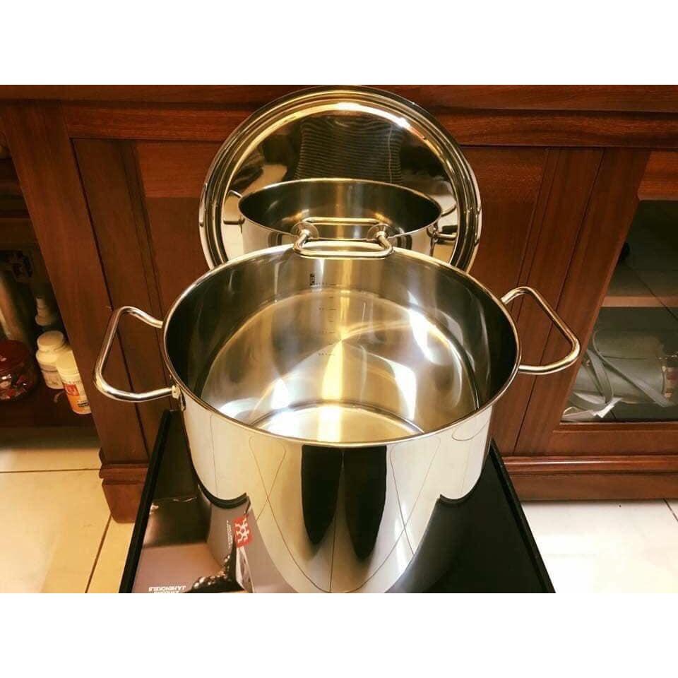 Nồi luộc gà, nấu phở Zwilling 14 lít, đường kính 28cm, bóng đẹp, dày chắc, thiết kế Classic thanh lịch, sang trọng. Hãng Zwilling là 1 trong những hãng sản xuất mẫu đồ gia dụng chất lượng nhất Đức.
