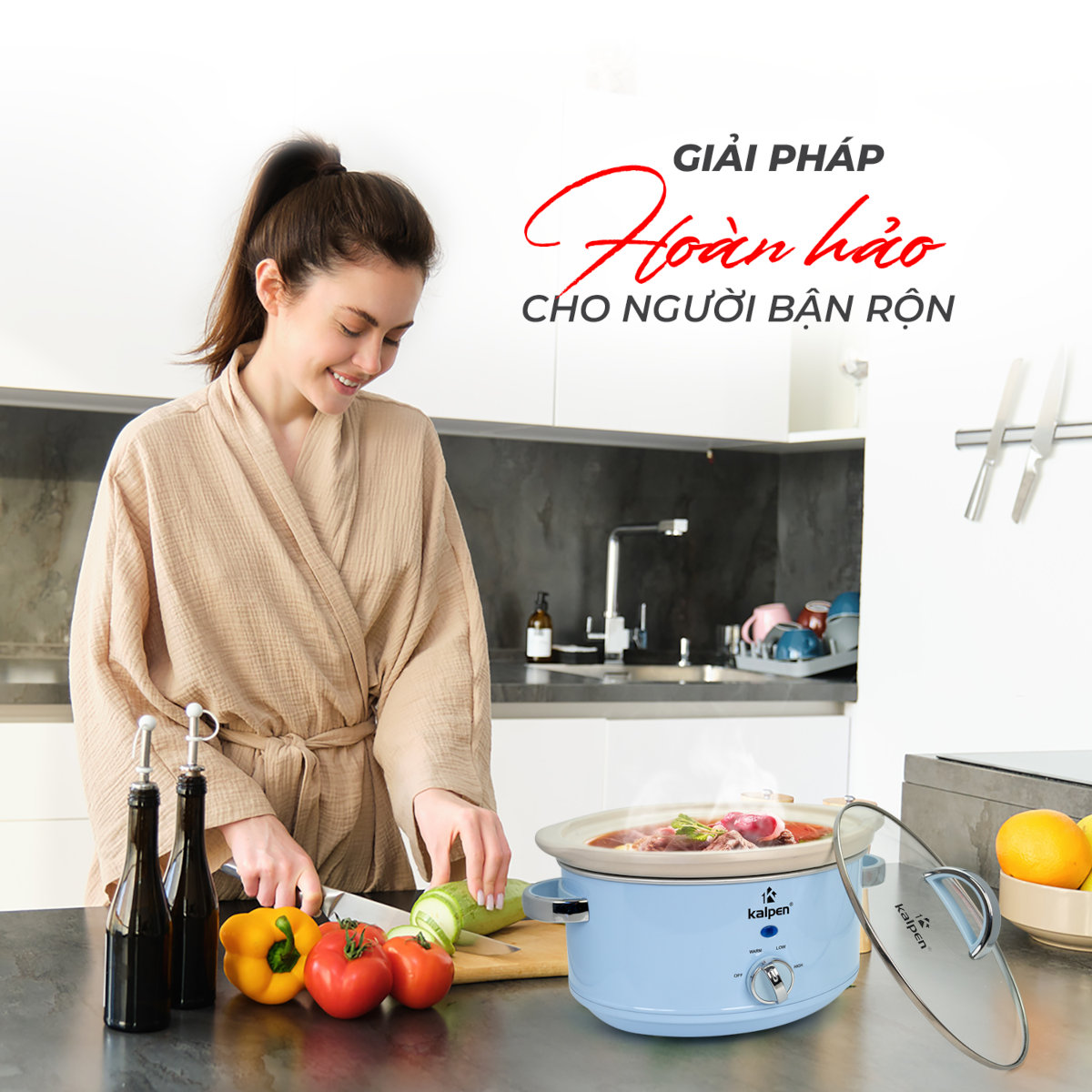 - Tiết kiệm thời gian và công sức Không chỉ giúp bạn và gia đình có những món ăn bổ dưỡng mà nồi nấu chậm Kalpen SK1 còn giúp bạn tiết kiệm thời gian và công sức nấu nướng. Bạn chỉ cần chuẩn bị nguyên liệu, cho nguyên liệu vào nồi và thiết lập thời gian nấu. Trong thời gian nồi nấu bạn thoải mái rảnh tay để làm những công việc khác. Sau thời gian nấu được thiết lập bạn đã có sẵn món ăn mà không hề tốn nhiều công sức hay thời gian vào bếp.