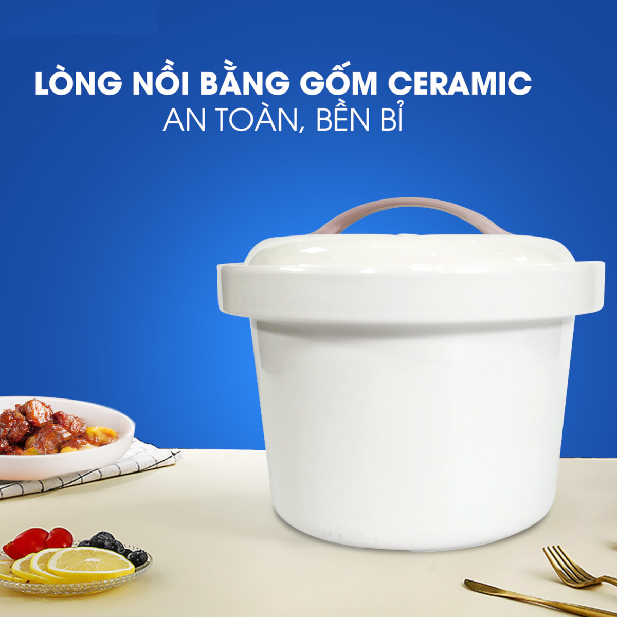 Nồi Nấu Chậm Cơ Bennix BN-68KC-C dung tích 3L Màu Trắng Nắp Sứ chuẩn Thái Lan - Zalo 0986588655