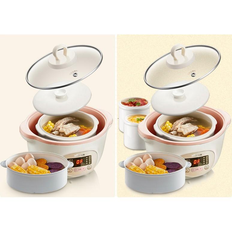Nồi nấu chậm kèm lồng hấp Bear DDZ-D16J3 (SUBE002) tích hợp nhiều tính năng nấu và hầm tiện lợi, giúp bạn làm nhiều món ăn khác nhau như: hấp, hầm, chưng yến, nấu cháo, Đặc biệt sản phẩm còn được trang bị tính năng hẹn giờ nấu và giữ nhiệt thông minh, không cần dậy sớm mà vẫn có thể nấu cháo thơm ngon vào mỗi sáng cùng nồi nấu chậm Bear DDZ-D16J3.