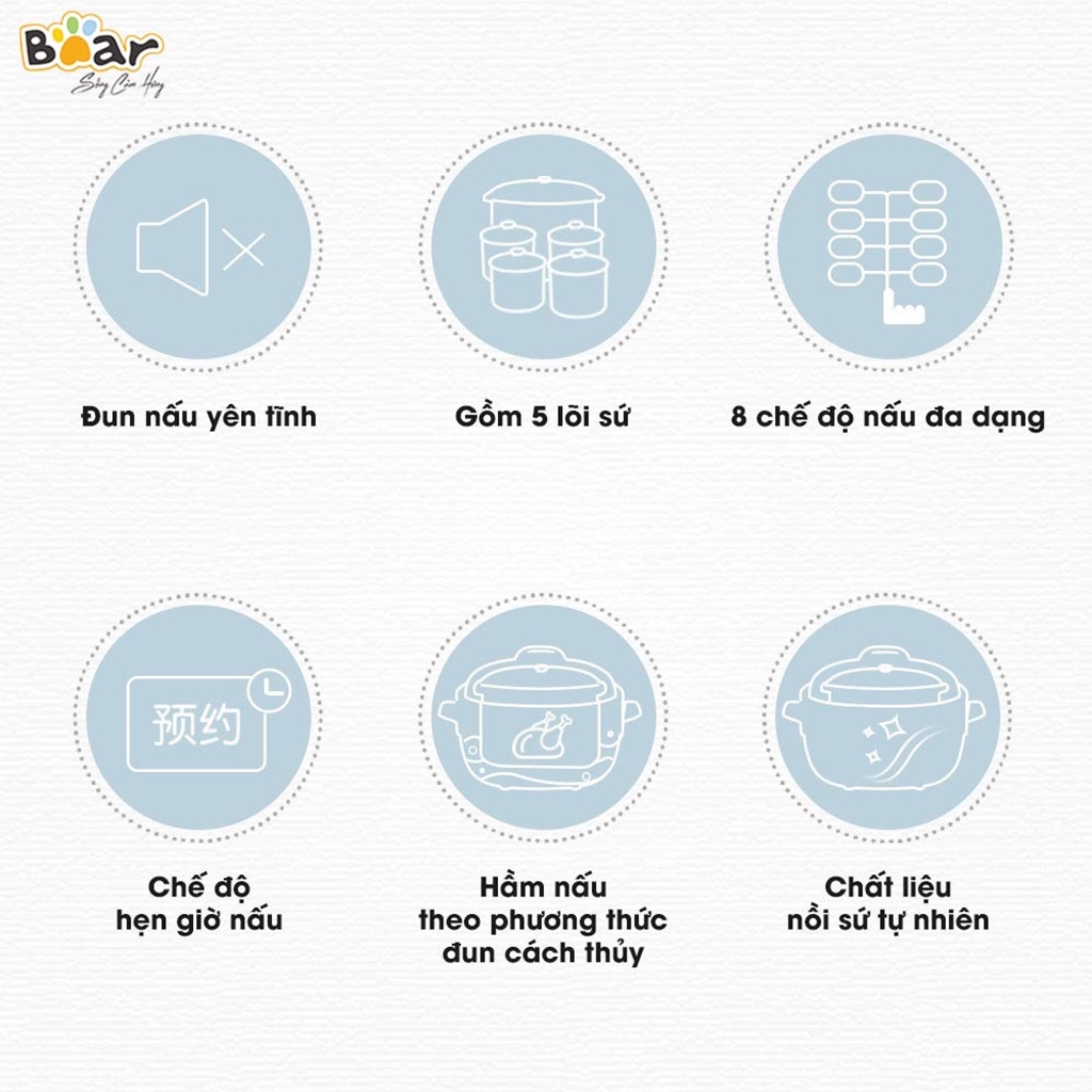 Nồi Nấu Chậm Bear 1.6L TIẾNG VIỆT - 3 Thố Sứ Kèm Xửng Hấp SB-NNC16