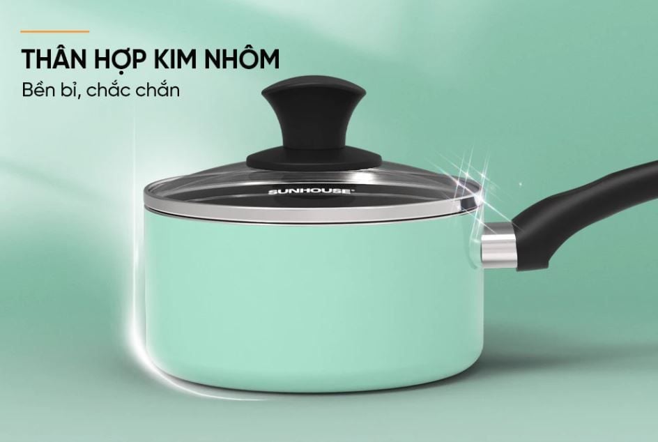 Nồi Nấu Bột Chống Dính Nắp Kính Sunhouse SHG-MP14 14cm được làm bằng hợp kim nhôm bền đẹp, dễ chùi rửa. Chất liệu nhôm chịu nhiệt và dẫn nhiệt tốt, giúp tiết kiệm thời gian đun nấu. -