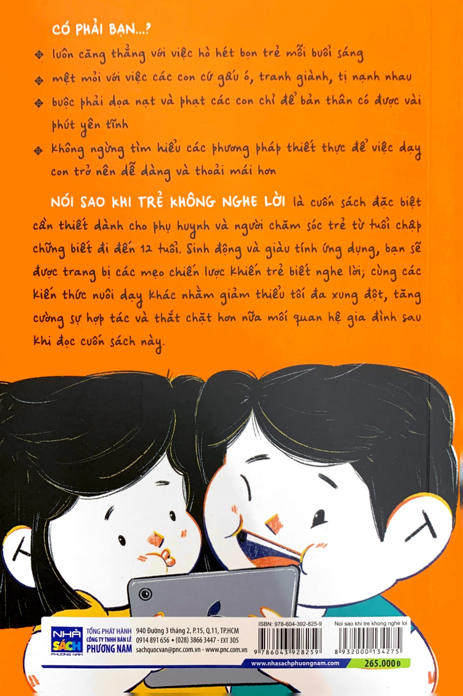 NÓI SAO KHI TRẺ KHÔNG NGHE LỜI là cuốn sách đặc biệt cần thiết dành cho các bậc phụ huynh và người chăm sóc trẻ từ tuổi chập chững biết đi đến 12 tuổi. Sinh động và giàu tính ứng dụng, bạn sẽ được trang bị các mẹo chiến lược khiến trẻ biết nghe lời cùng các kiến thức nuôi dạy khác nhằm giảm thiểu tối đa xung đột, tăng cường sự hợp tác và thắt chặt hơn nữa mối quan hệ gia đình sau khi đọc cuốn sách này.