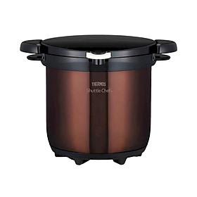 - Bước 5: Đậy nắp ngoài cùng. Thức ăn sẽ tiếp tục được nấu và giữ nhiệt sau khi đặt nồi nấu vào trong nồi ủ. Chú ý: Sau khi nhấc nồi nấu ra khỏi bếp gas tuyệt đối không được để nồi lên mặt kính, gạch men vì lúc này nhiệt độ của tấm hợp kim giữ nhiệt là rất lớn Review của khách hàng Chị Dung nhà Quận 3 người đã sử dụng nồi ủ Thermos hơn 2 tháng chia sẻ ‘’Trước đây mình sử dụng nồi ủ thương hiệu khác mua hơn triệu đồng nhưng chỉ nấu được với bếp gas hầm thì rất lâu chín, mình sử dụng hơn 1 năm thì nồi chỉ có thể giữ ấm. Hôm trước đến nhà bạn chơi thấy sử dụng nồi ủ Thermos bạn ấy nhờ người quen bên Nhật mua dùm, thích quá lên internet tìm mua. Nồi ủ Thermos có thể nấu trên bếp gas, bếp từ hay hồng ngoại, chỉ cần nấu sôi lên khoảng 7 phút, rồi cho vào vỏ ủ khoảng hơn 1 giờ là thịt mềm, còn giữ nóng thì đến 20 giờ nên rất tiện lợi. Từ khi có nồi ủ mình thường xuyên nấu món ăn mà trước đây muốn nấu cần rất nhiều thời gian như ninh xương lấy nước dùng, hầm chân giò heo, nấu bò kho, bắp bò ” Thông tin sản phẩm Loại sản phẩm: Nồi ủ chân không Qui cách: Bộ nồi ủ gồm vỏ ủ ( bọc bên ngoài), nồi nấu và nắp thủy tinh. Màu sắc: Có 2 màu (nâu đồng, inox) Xuất xứ thương hiệu: Nhật Bản Sản xuất tại nước thứ 3: Trung Quốc Kích thước: 31 × 26.5 × 24cm, đường kính bên trong nồi nấu tối đa / 20cm Trọng lượng: 3.1kg Chất liệu: thép không gỉ, nhôm, (bao gồm độ dày 5.0mm chùm đáy phía dưới) Nắp: kính cường lực, tay cầm núm bằng nhựa phenol, cách nhiệt Dung tích: 4.5L dùng cho người 4-6 người Cấu tạo: cấu trúc ba lớp đáy.