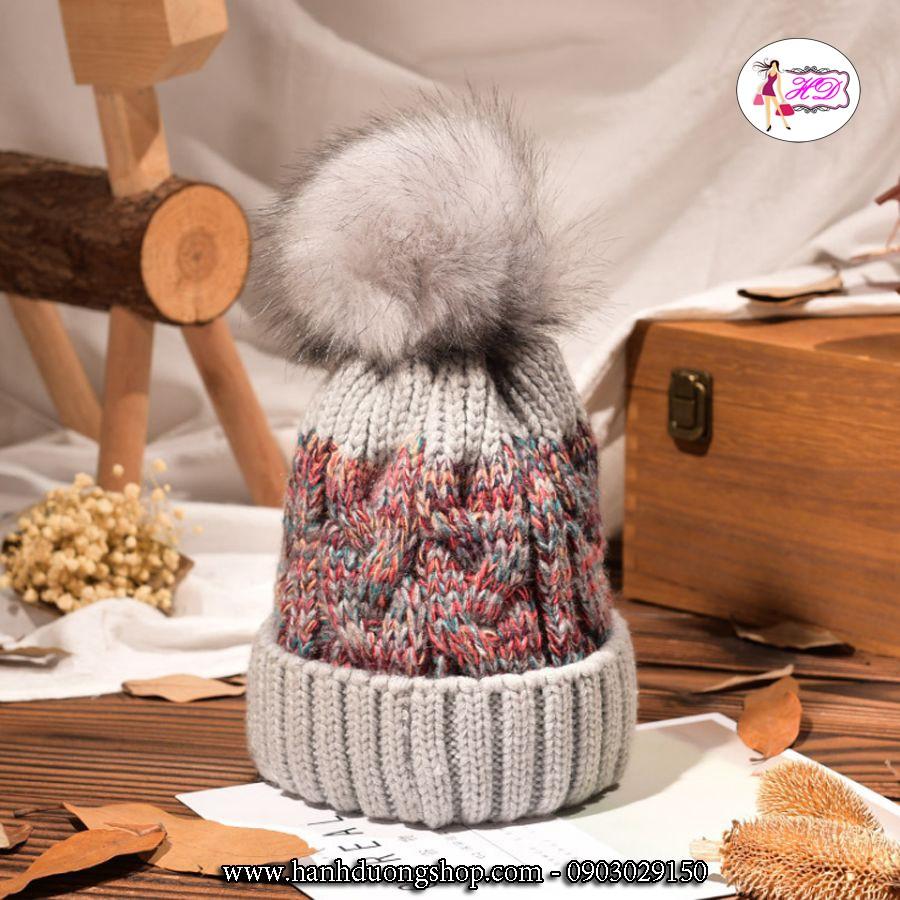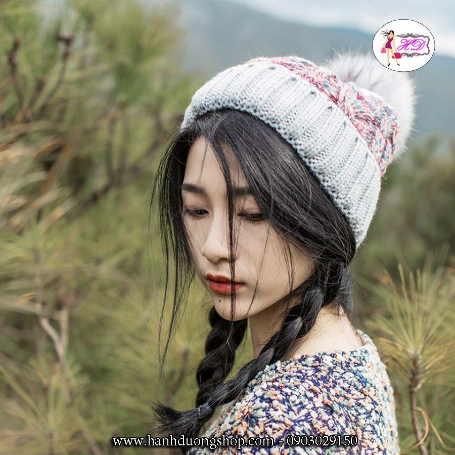 Nón len chụp đầu giữ ấm mùa đông, chất liệu vải len ấm áp bền đẹp, có búi trên đầu thời trang - Hạnh Dương