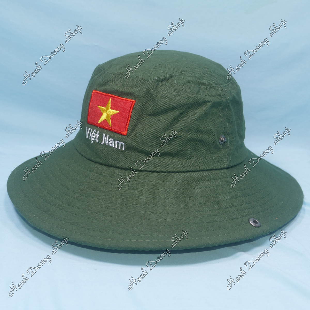 ✨Nón tai bèo rộng vành nam thêu lá cờ Việt Nam, chất liệu vải kaki oát mát mẻ, bền chắc - Dùng khi làm việc ngoài trời - Hạnh Dương