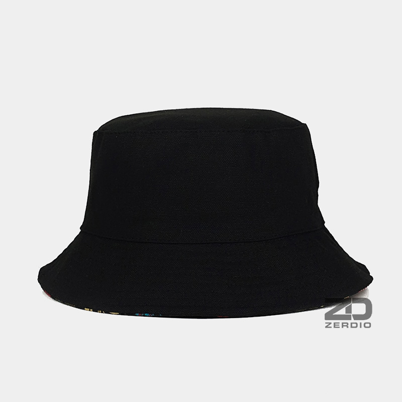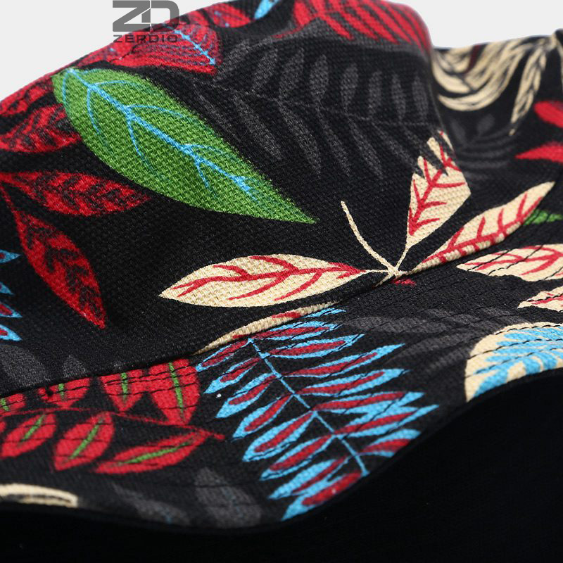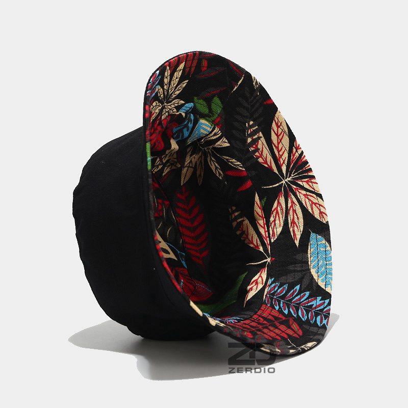 Nón vành tròn, mũ bucket 2 mặt đen trơn, họa tiết lá cá tính cho cả nam và nữ - ZERDIO