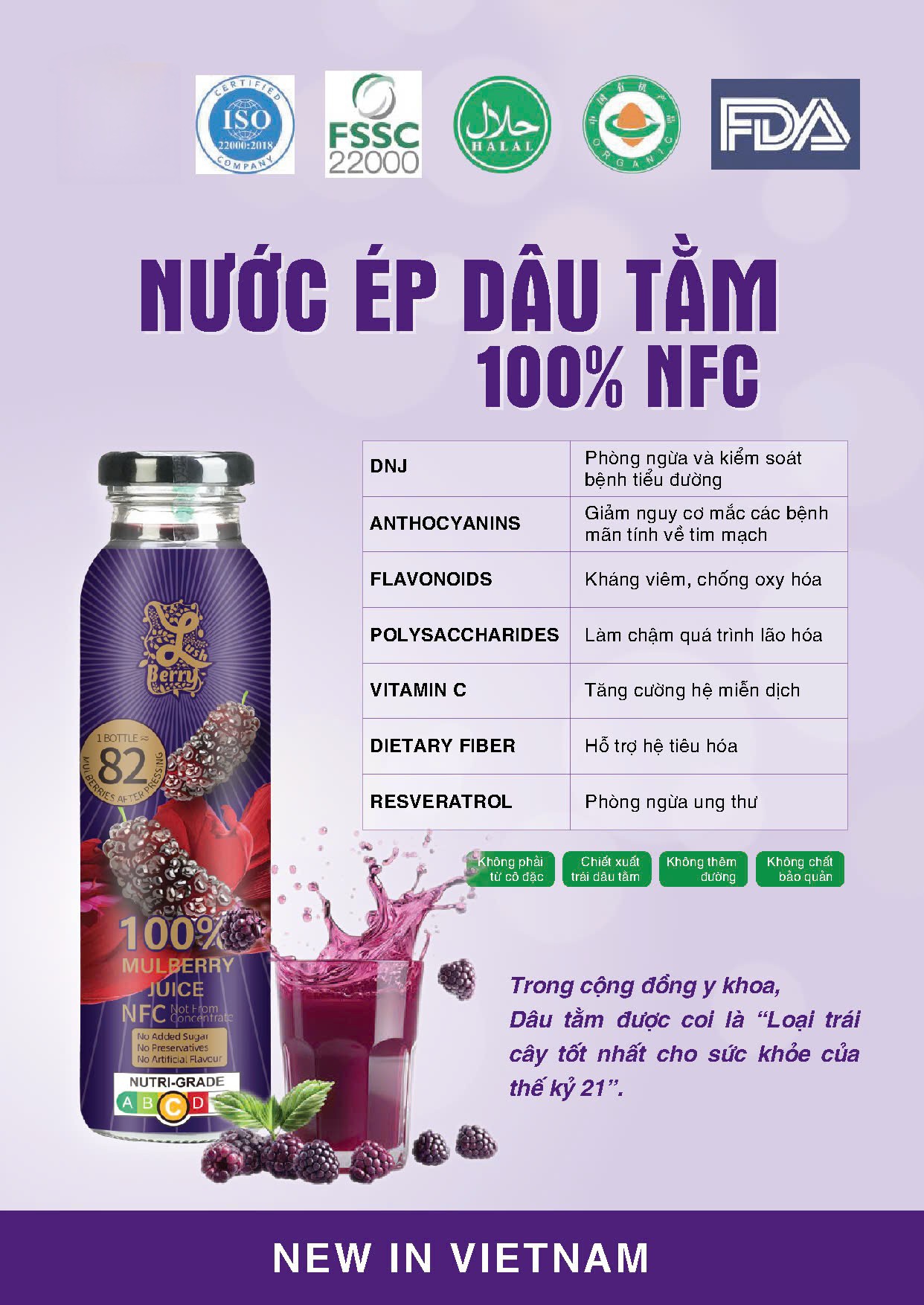 Nước ép Dâu tằm nguyên chất 100% - Không qua cô đặc