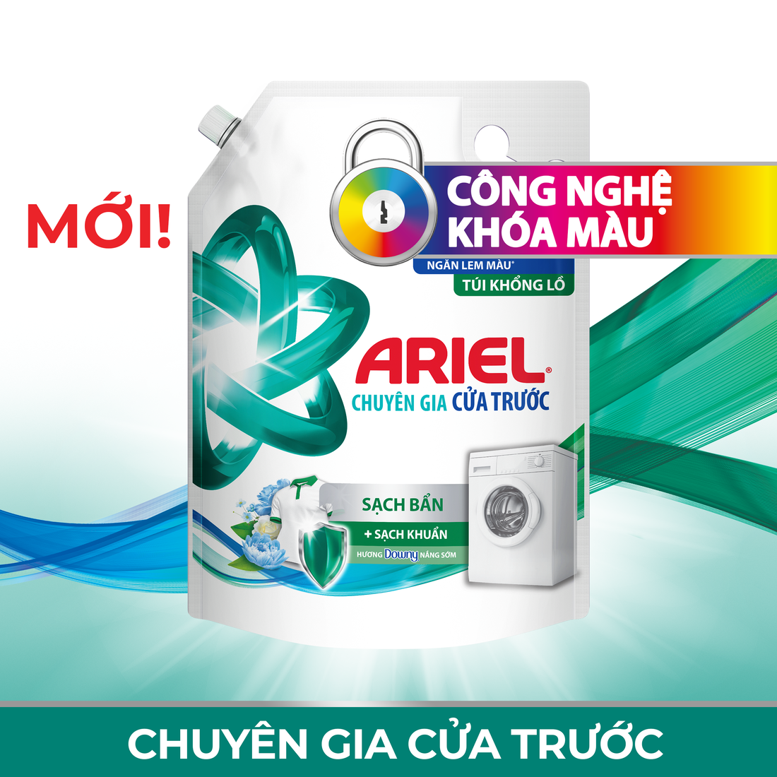 Nước Giặt ARIEL Chuyên Gia Cửa Trước MỚI! Khuyên dùng bởi nhà sản xuất máy giặt #1(*) tại Việt Nam Với ba tính năng hoàn toàn mới: - Sạch Bẩn + Sạch Khuẩn, với hương