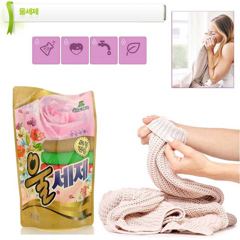 Nước giặt vải Len, vải Dạ mùi hương nước hoa Sandokkaebi túi 500g nhập khẩu Hàn Quốc