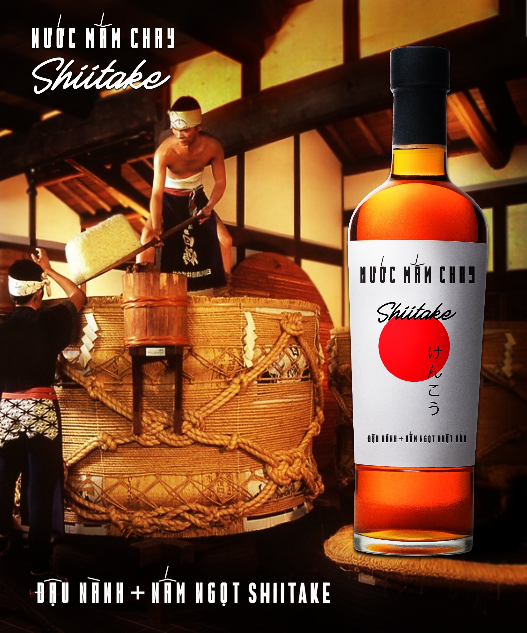 - Nước mắm chay Shiitake được làm từ các nguyên liệu chính là nấm ngọt Shiitake, đậu nành Nhật Bản, nước cốt thơm dứa, muối tinh khiết và đường phèn tự nhiên. Chính nhờ kết hợp những nguyên liệu độc đáo này thời gian ủ đạt chuẩn này mà nước mắm chay Shiitake có hương vị rất ngon. QUY TẮC BẢO QUẢN