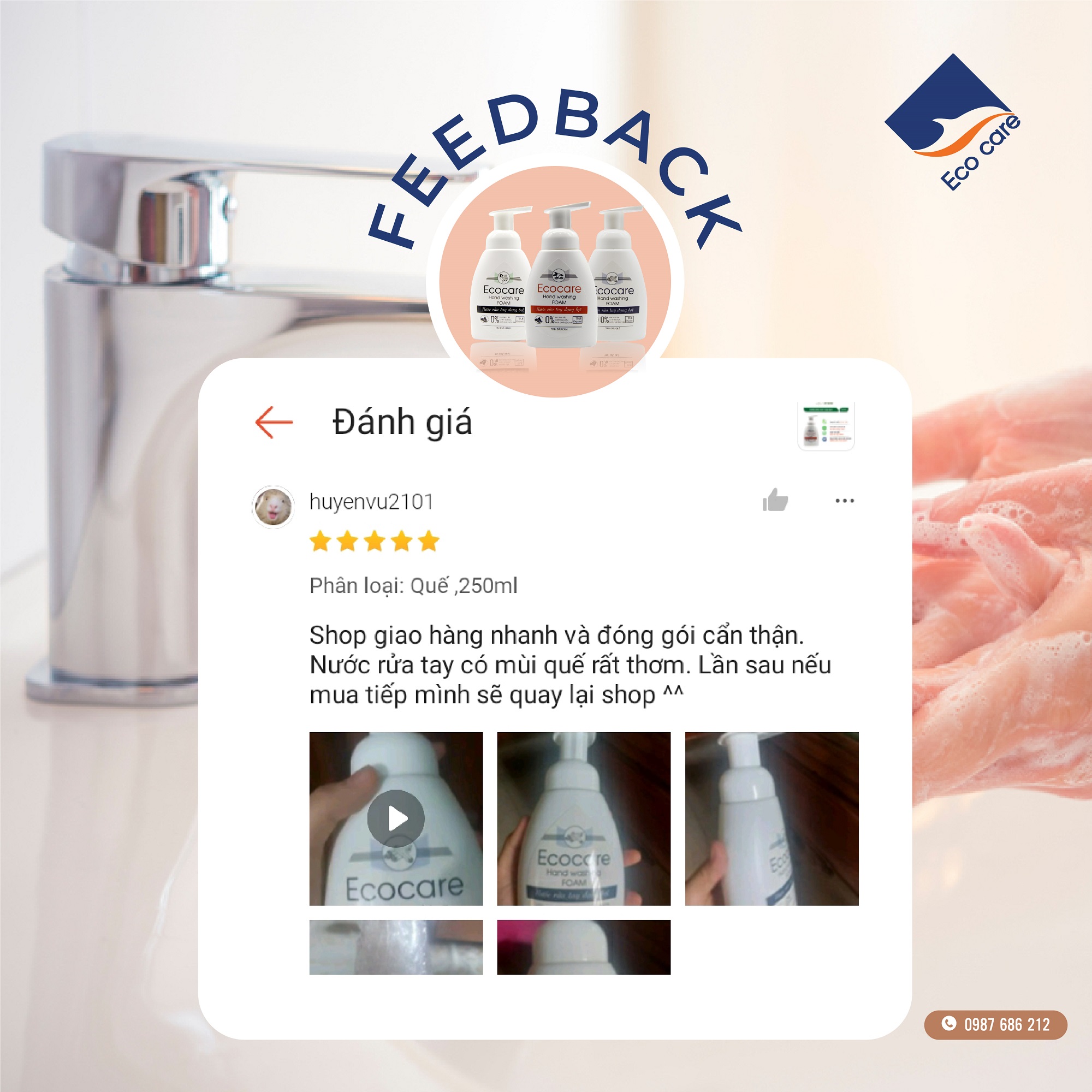 • Trước tiên, Công ty Ecocare xin cảm ơn Quý Khách hàng đã tin tưởng lựa chọn sản phẩmNước rửa tay tạo bọt Hữu cơ 250ml, Nước rửa tay xà phòng diệt khuẩn tinh dầu thiên nhiên (Cam/Quế/Nhài) của Ecocare