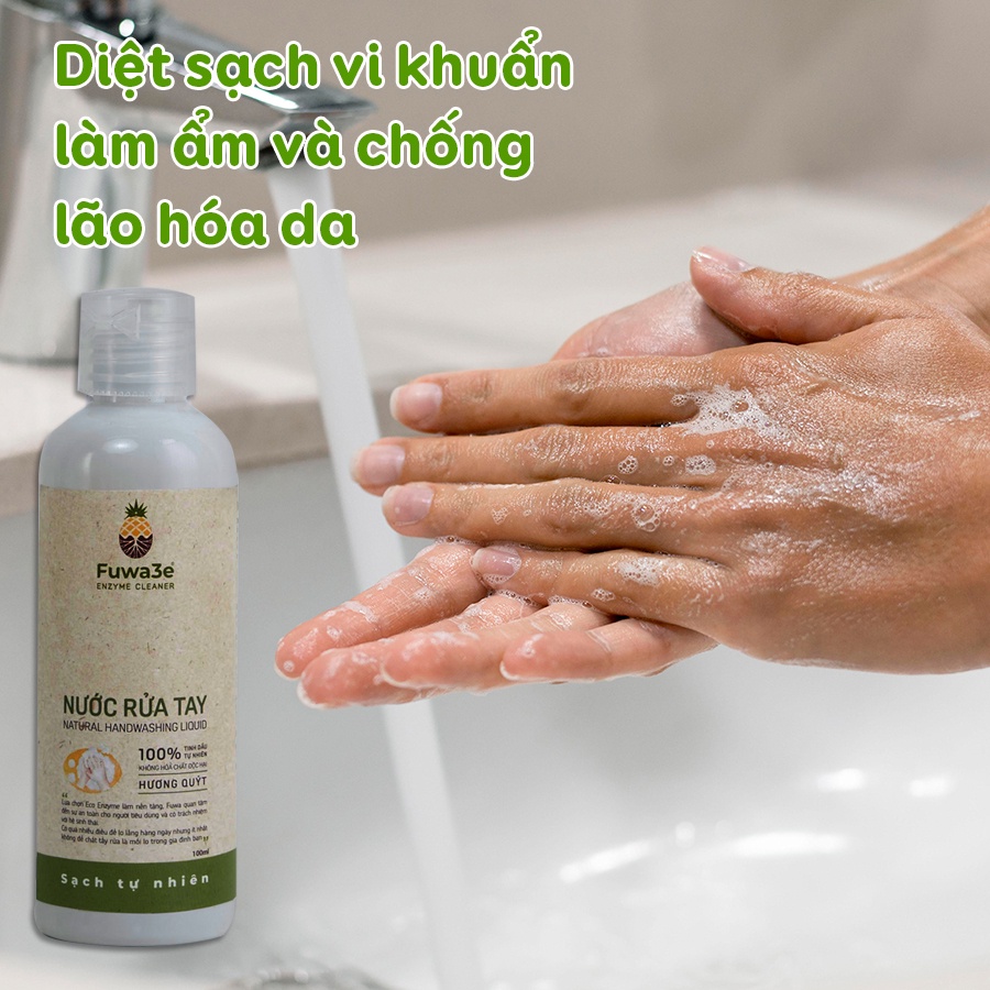 - Tiết kiệm nước hơn với chỉ một lần xả nước. THÔNG TIN CHI TIẾT VỀ THÀNH PHẦN: Nước rửa tay mùi tinh dầu Quýt tự nhiên. Các acid hữu cơ tự nhiên trong dứa giúp trung hòa các amid gây mùi. Enzyme tự nhiên trong Dứa như Protease, amylase giúp phân tách chất bẩn nhẹ nhàng và hiệu quả Thành phần hoàn toàn tự nhiên tốt hơn nhiều cho những người nhạy cảm với hóa chất khắc nghiệt, ngăn ngừa kích ứng và mang lại làn da mềm mại. Không chứa chất hoạt động bề mặt gốc dầu LABs, Xút ( NaOH), paraben, sản phẩm động vật, chất tạo màu và nước hoa tổng hợp. Chưa bao giờ thử nghiệm trên động vật, Fuwa3e được Liên Hiệp Quốc UNDP chứng nhận là doanh nghiệp tạo tác động xã hội châu Á Thái Bình Dương, đại diện Việt Nam tham dự hội nghị tại Malaysia 2021. Phân hủy sinh học, nước thải ra môi trường sẽ cung cấp vi sinh lợi khuẩn giúp xử lý nguồn nước, qua đó ngăn chặn sự phát triển của muỗi.