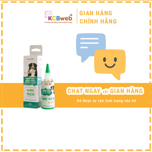 Bảo vệ răng miệng cho chó mèo là một trong những điều quan trọng khi nuôi thú cưng luôn ạ, nên KCBweb khuyến khích nhà mình đơn giản nhất là dùng nước súc miệng nhà Vemedim nha: Thành phần: Chlorhexidine gluconate, Cetylpyridinium chloride, Sorbitol, Chlorophyllin, Glycerin Công dụng: Hạn chế hôi miệng, làm sạch sâu thơm mát, làm sạch khoang miệng, hạn chế vôi răng. Cách dùng: