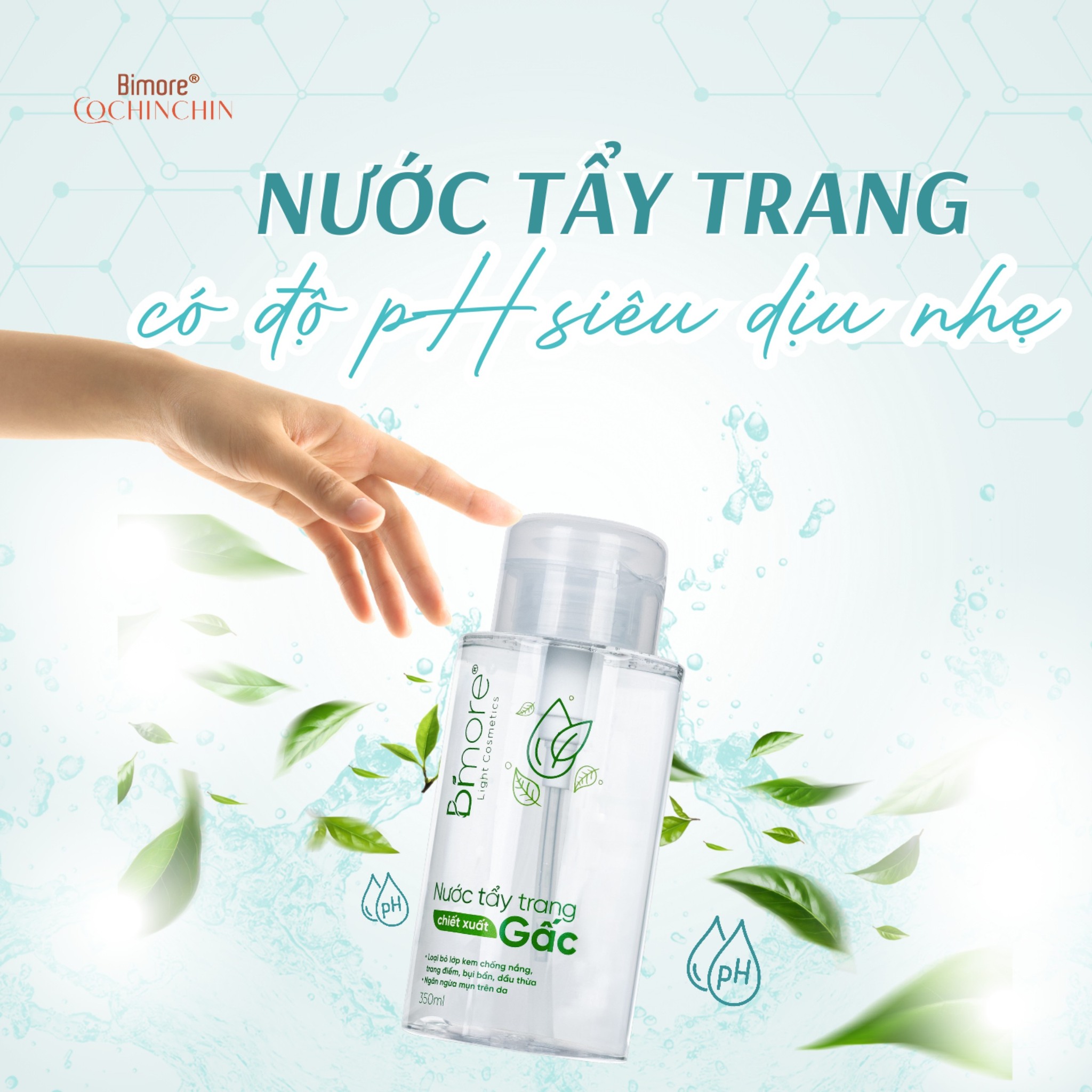 -> Tiện lợi sử dụng vào những lúc cần bôi dặm lại kem chống nắng mà không cần rửa lại bằng sữa rửa mặt, chỉ cần lau mặt với nước tẩy trang Bimore rồi bôi lại kem.