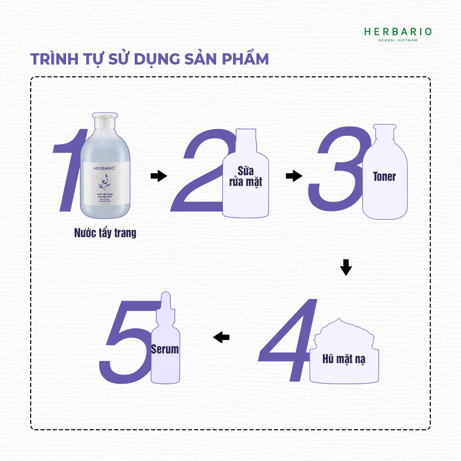 Nước tẩy trang Hoa Đậu Biếc herbario giảm thiểu các tạp chất, bã nhờn và lượng dầu dư thừa, các lớp make up và cung cấp dưỡng chất từ phức hợp vitamin giúp làn da phục hồi chống oxy hóa và sáng sạch ngay sau khi tẩy trang.