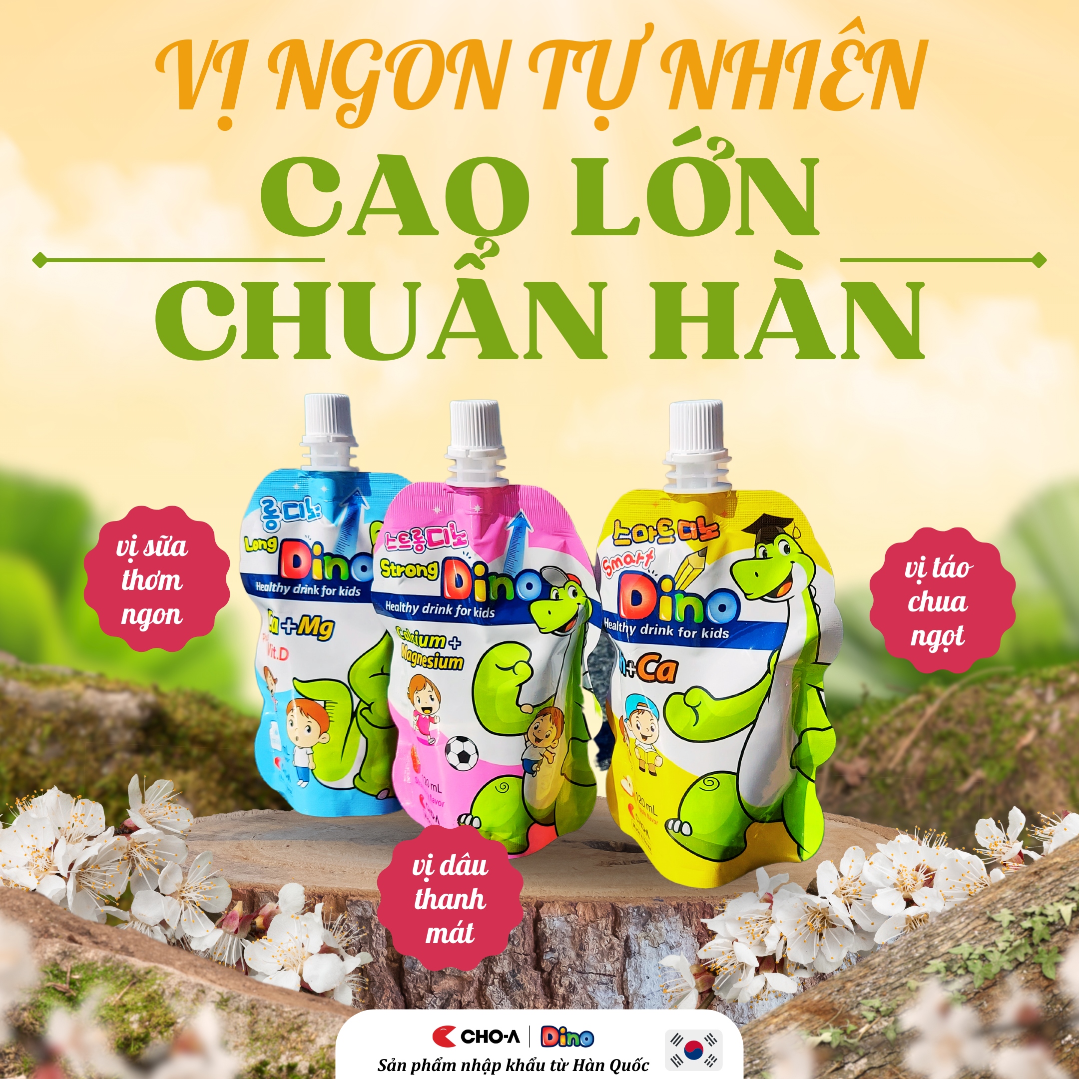 NƯỚC UỐNG BỔ SUNG CANXI VÀ VITAMIN D CHO TRẺ - LONG DINO VỊ SỮA (1 GÓI X 120ML) Nước uống dinh dưỡng Dino là sự lựa chọn hoàn hảo dành cho trẻ em trên 3 tuổi, là giải pháp tuyệt vời để hạn chế trẻ sử dụng các loại nước có gas. Sản phẩm được sản xuất bởi dây chuyền công nghệ hiện đại đạt chuẩn HACCP và GMP, được đảm bảo chất lượng dưới sự kiểm tra nghiêm ngặt của công ty CHO-A PHARM Hàn Quốc. Công Dụng: