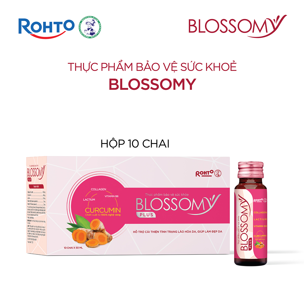 - Nước uống collagen giúp sáng da, dạ dày khỏe Blossomy Curcumin Tươi Trẻ Từ Bên Trong 50ml bổ sung collagen và curcumin giúp làn da luôn tươi trẻ.