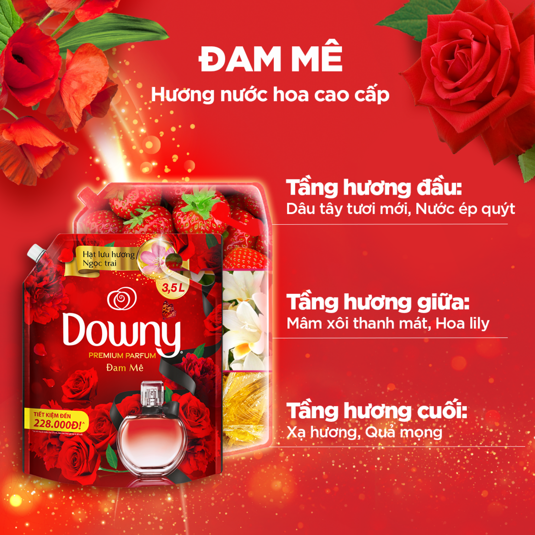 Nước xả vải Downy Hương nước hoa có 3 mùi hương độc đáo cho mỗi dịp sử dụng, mỗi tâm trạng, và phong cách của bạn:
