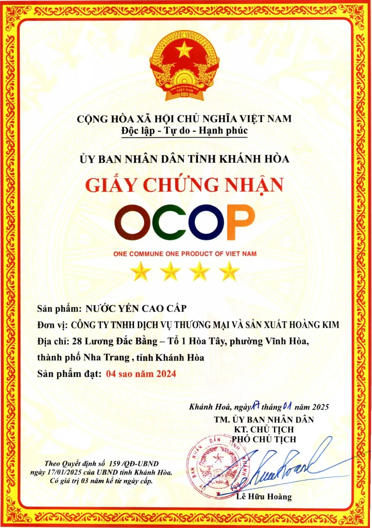 - Chất Lượng OCOP 4 Sao Được Chứng Nhận: Sản phẩm đạt chứng nhận OCOP 4 sao của tỉnh Khánh Hòa năm 2024, đảm bảo người tiêu dùng được sử dụng một sản phẩm uy tín, chất lượng.