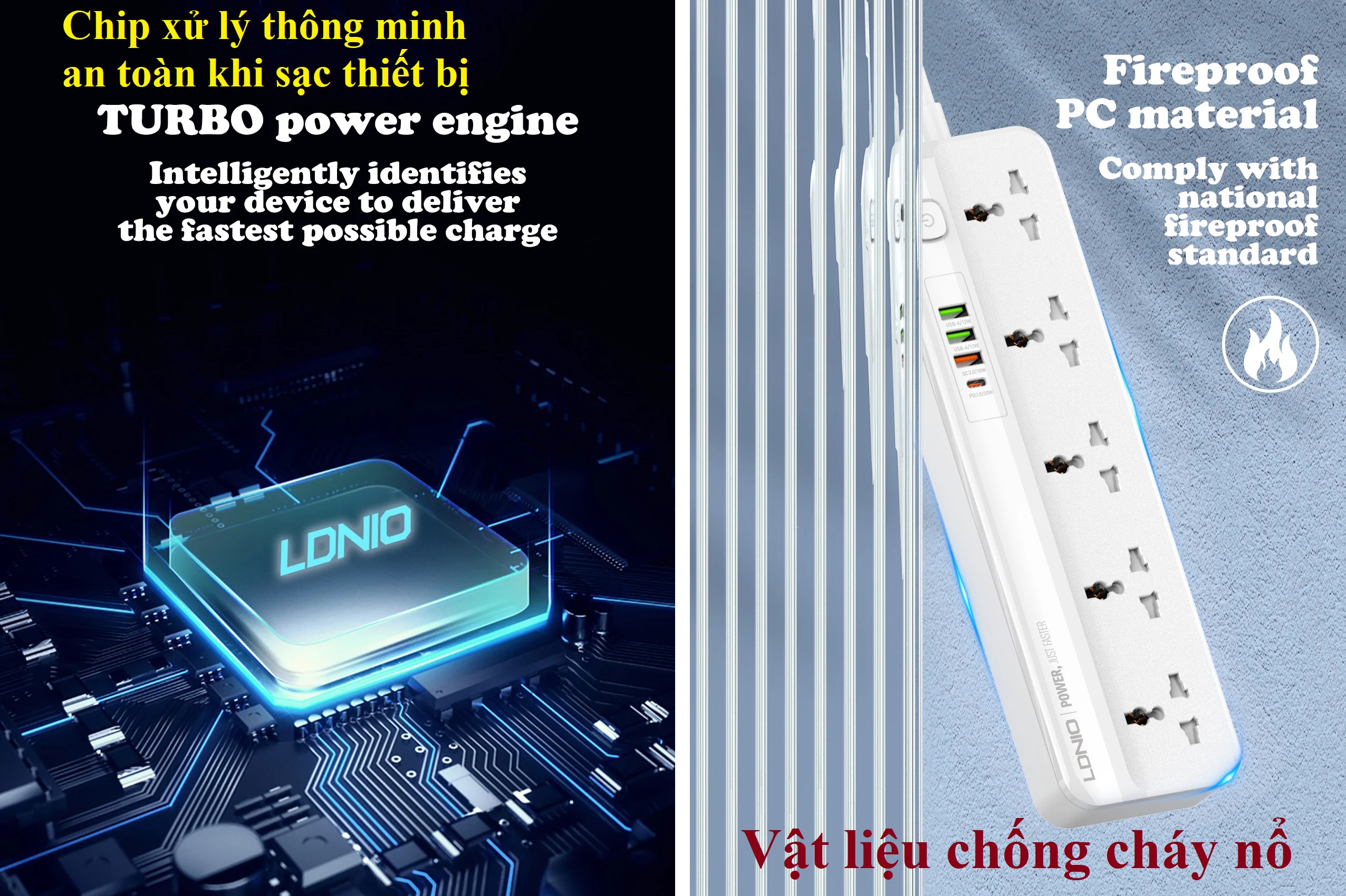 ✨Ổ cắm đa năng 2500W tích hợp sạc nhanh PD20W QC18W LDNIO SC5415 _ hàng chính hãng