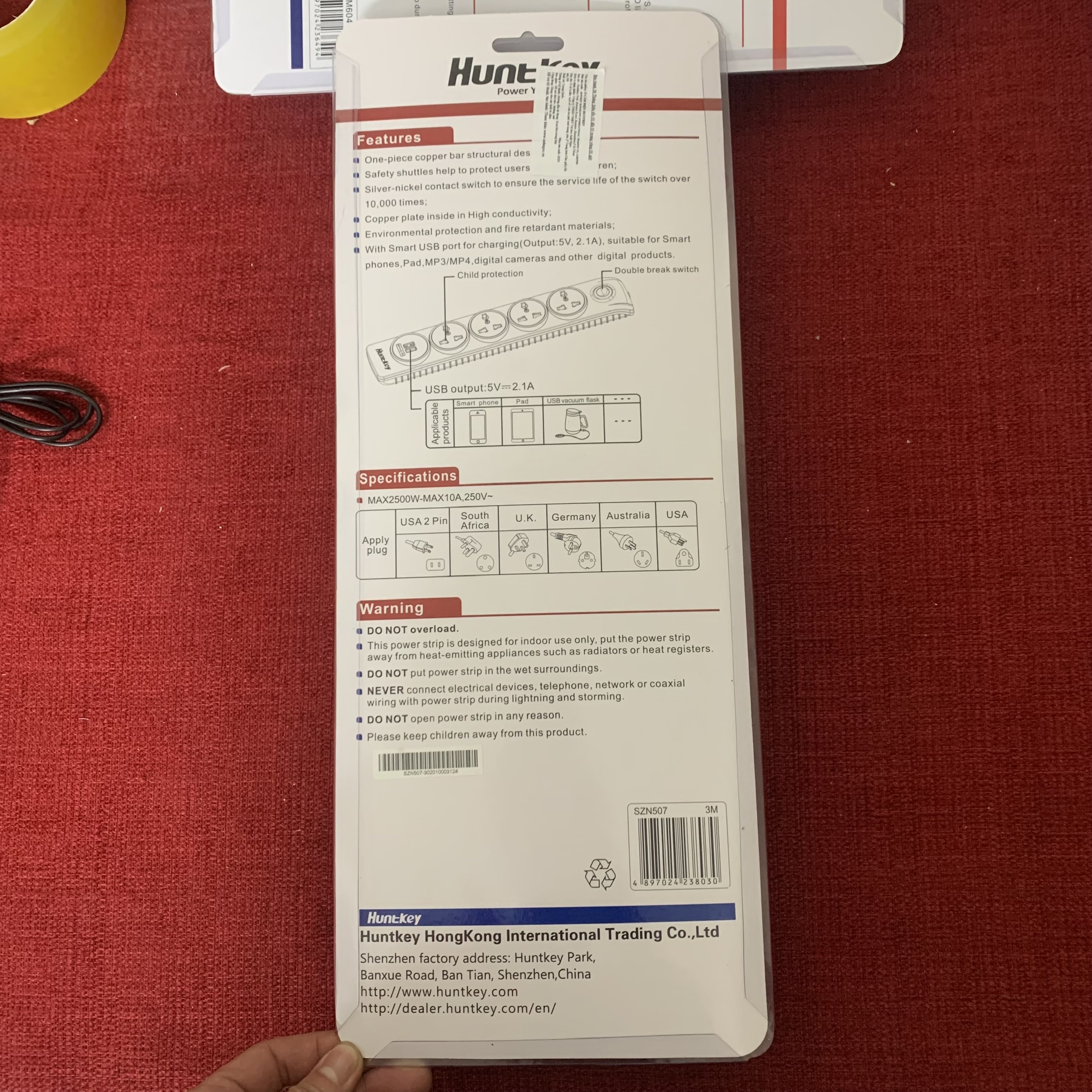 Ổ CẮM ĐIỆN THÔNG MINH ĐA NĂNG HUNTKEY SZN-507-2.1A (3M) * Thiết kế sang trọng, sản phẩm dành cho thị trường EU, Nhật Bản. * Độ dài dây cáp: 3mét * 4 ổ cắm