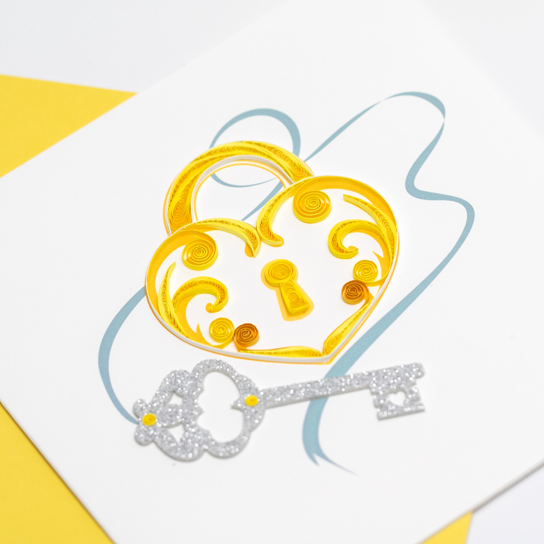 ✨Ổ khóa và chìa khóa tình yêu - Thiệp giấy xoắn tối giản 15 x 15 cm - Thiệp chúc mừng tình yêu
