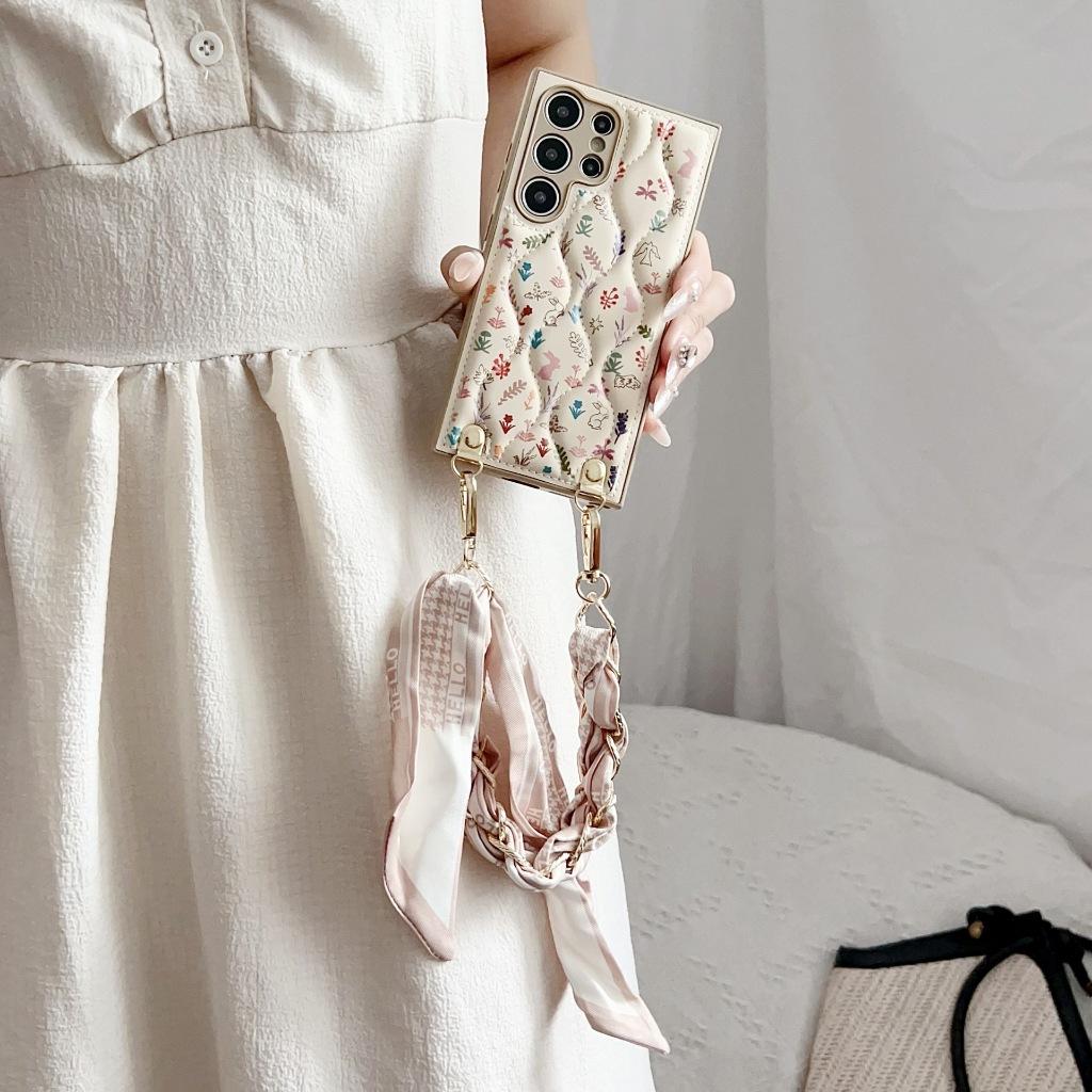 ✨Ốp Lưng TPU Chỉ Nổi Họa Tiết Hoa Kèm Quai Khăn Lụa Sang trọng Cho Samsung S25 Ultra / S24 Ultra / S23 Ultra