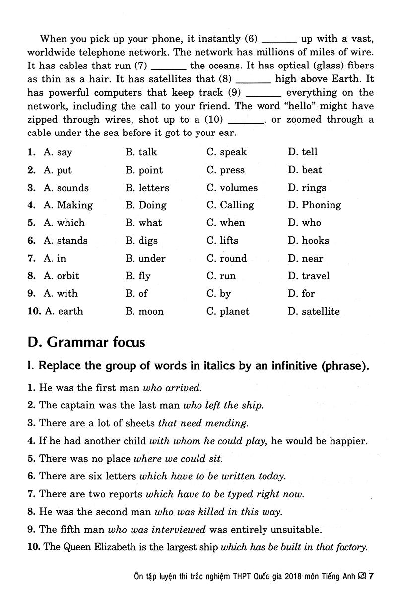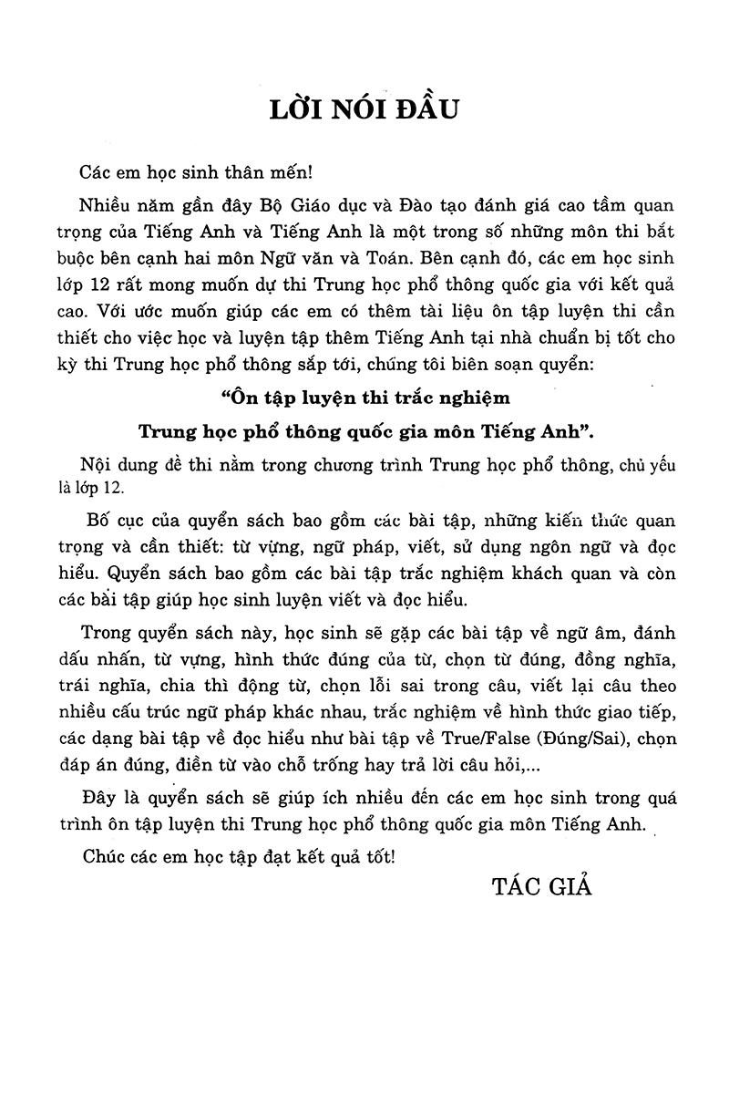 Quyển sách Ôn Tập Luyện Thi Trắc Nghiệm THPTQG 2019 - Môn Tiếng Anh cung cấp những kiến thức hữu ích về ngữ pháp môn Tiếng Anh và các dạng bài tập.