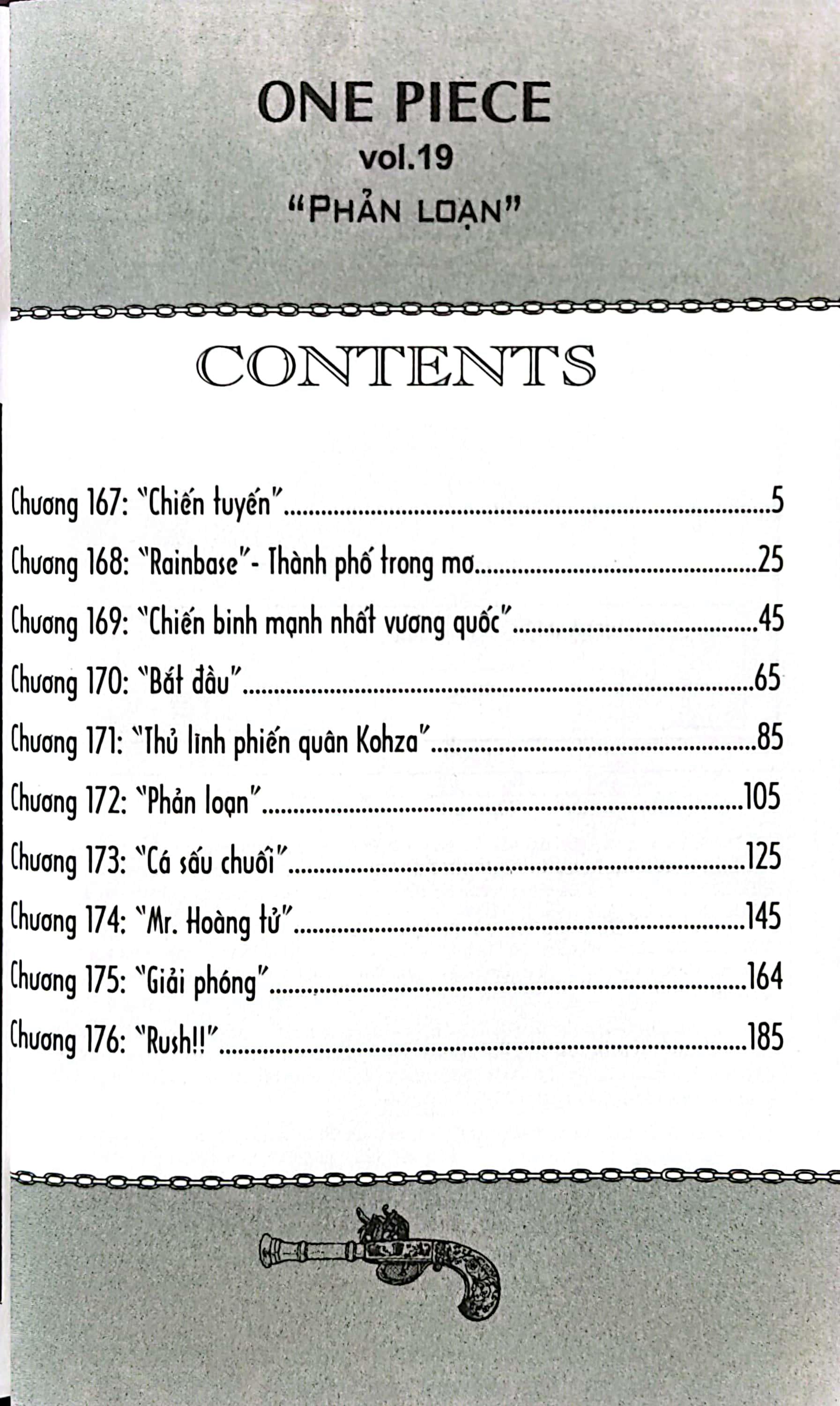 One Piece Tập 19: Phản Loạn (Tái Bản 2022) Trúng kế của B.W, phiến quân đã nổi dậy khiêu chiến với quân đội hoàng gia!! Vì muốn ngăn chặn làn sóng nổi dậy đó, hội Luffy đã xông thẳng vào Rainbase, nơi ẩn náu của Mr.O nhưng không may rơi vào bẫy và bị nhố Những chuyến phiêu lưu trên đại dương xoay quanh “ONE PIECE” lại bắt đầu!!