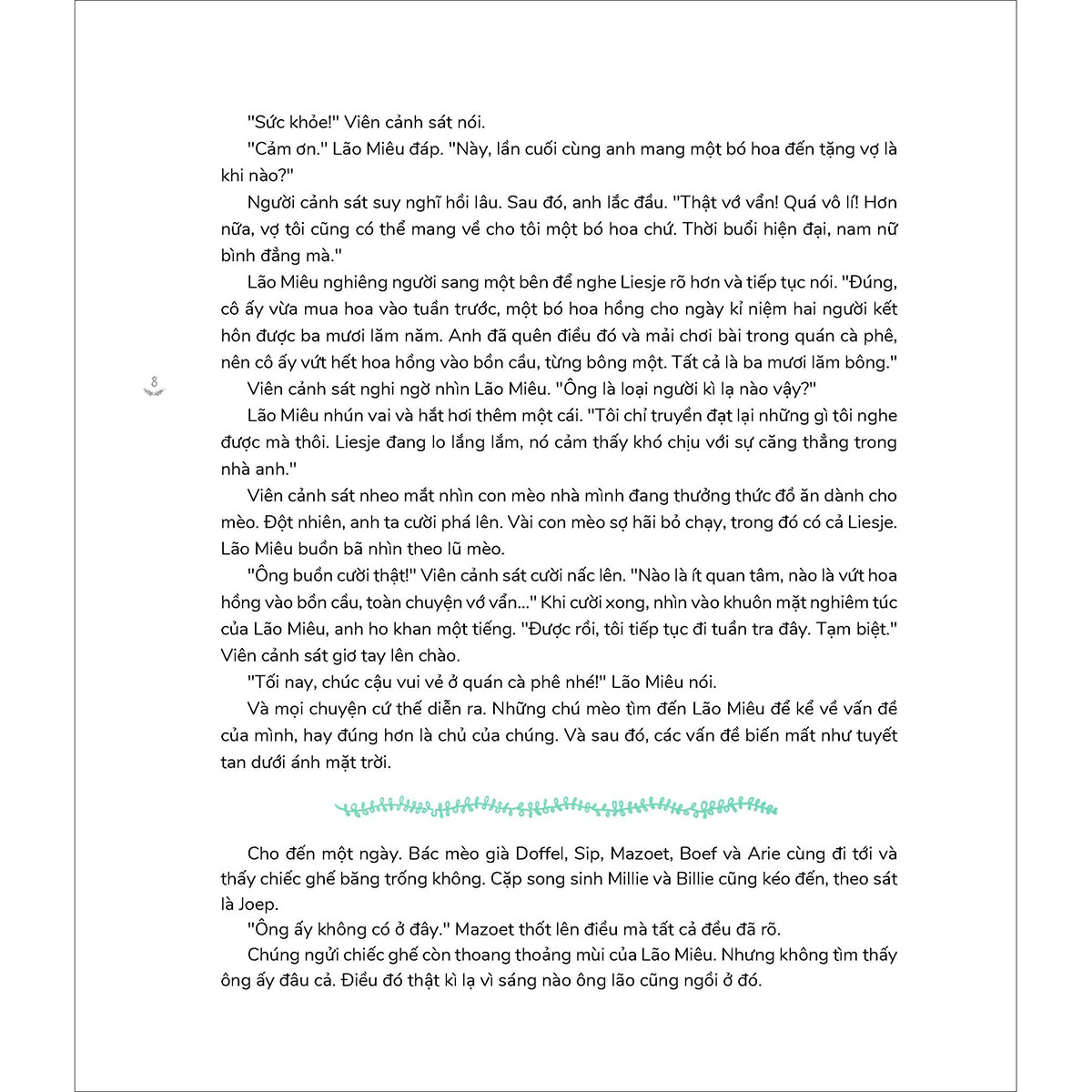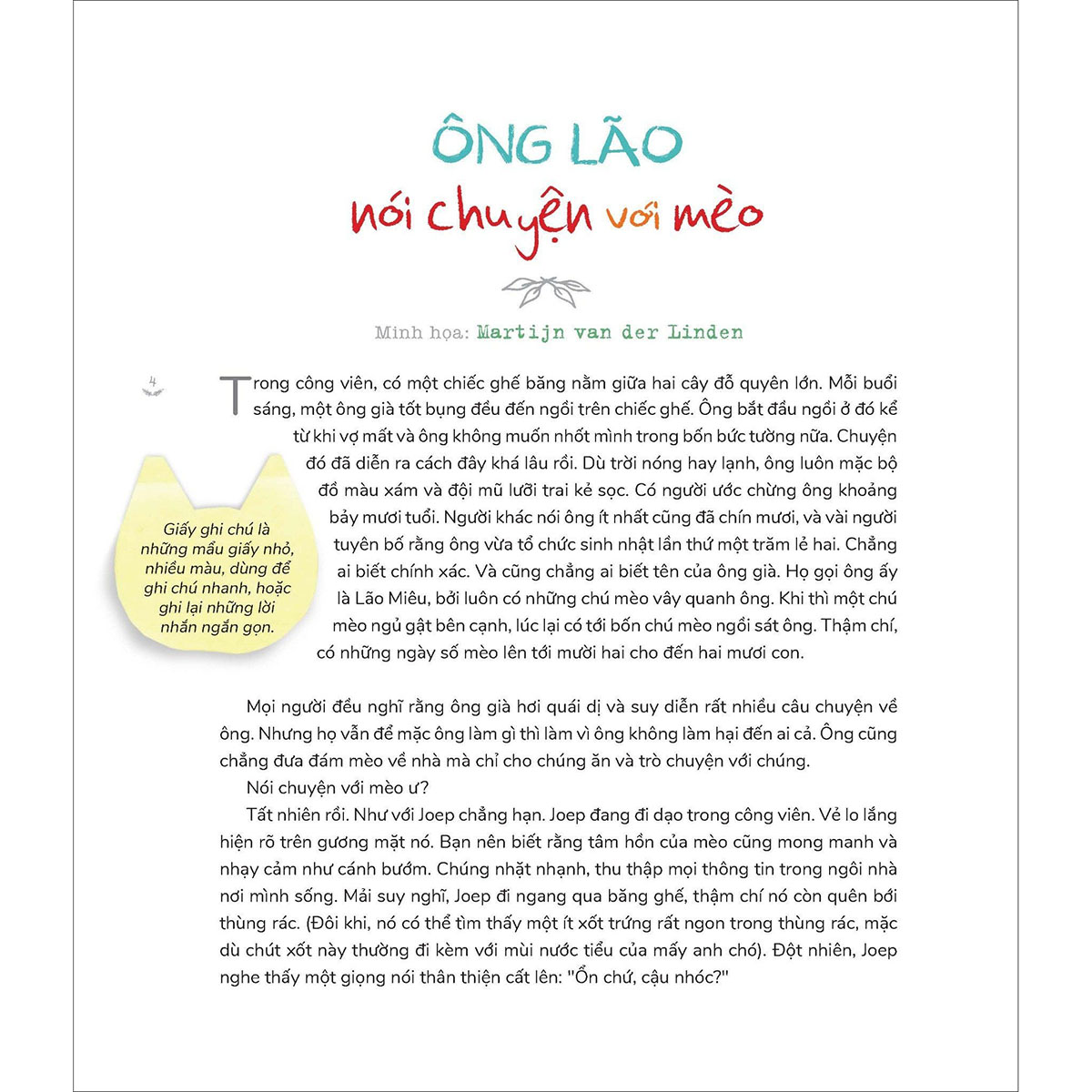 Ông lão nói chuyện với mèo gồm mười lăm câu chuyện cổ tích hiện đại đầy bất ngờ và hóm hỉnh của tác giả Janneke Schotveld, được thể hiện qua nét vẽ tuyệt đẹp của các họa sĩ minh họa Martijn van der Linden, Georgien Overwater, Nazrina Rodjan, Milja Praagman, Tanneke Wigersma, Annette Fienieg, Jan Jutte, Annet Schaap, Sanne te Loo, Liset Celie, Job van Gelder, Linda Groeneveld, Kirsten Offringa, Tanako Hamano và Kristof Devos.