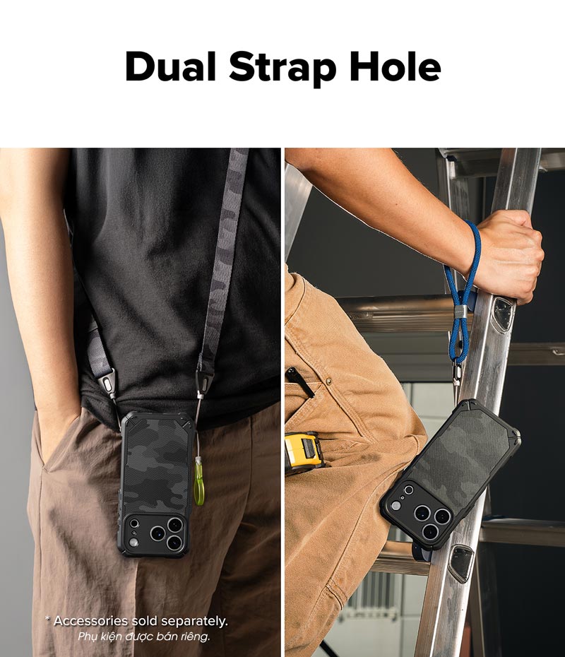 • Kích thước lỗ xỏ dây đeo cải tiến cho phép treo (móc) được 2 phụ kiện cùng lúc. Lưu ý: dây đeo được bán riêng. Hình ảnh chỉ minh họa cách sử dụng sản phẩm.