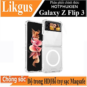 Ốp lưng chống sốc trong suốt hỗ trợ sạc Maqsafe cho Samsung Galaxy Z Flip 3 / Z Flip 4 hiệu Likgus Maqsafe Magetic Case siêu mỏng 1.5mm, độ trong tuyệt đối, chống trầy xước, chống ố vàng, tản nhiệt tốt