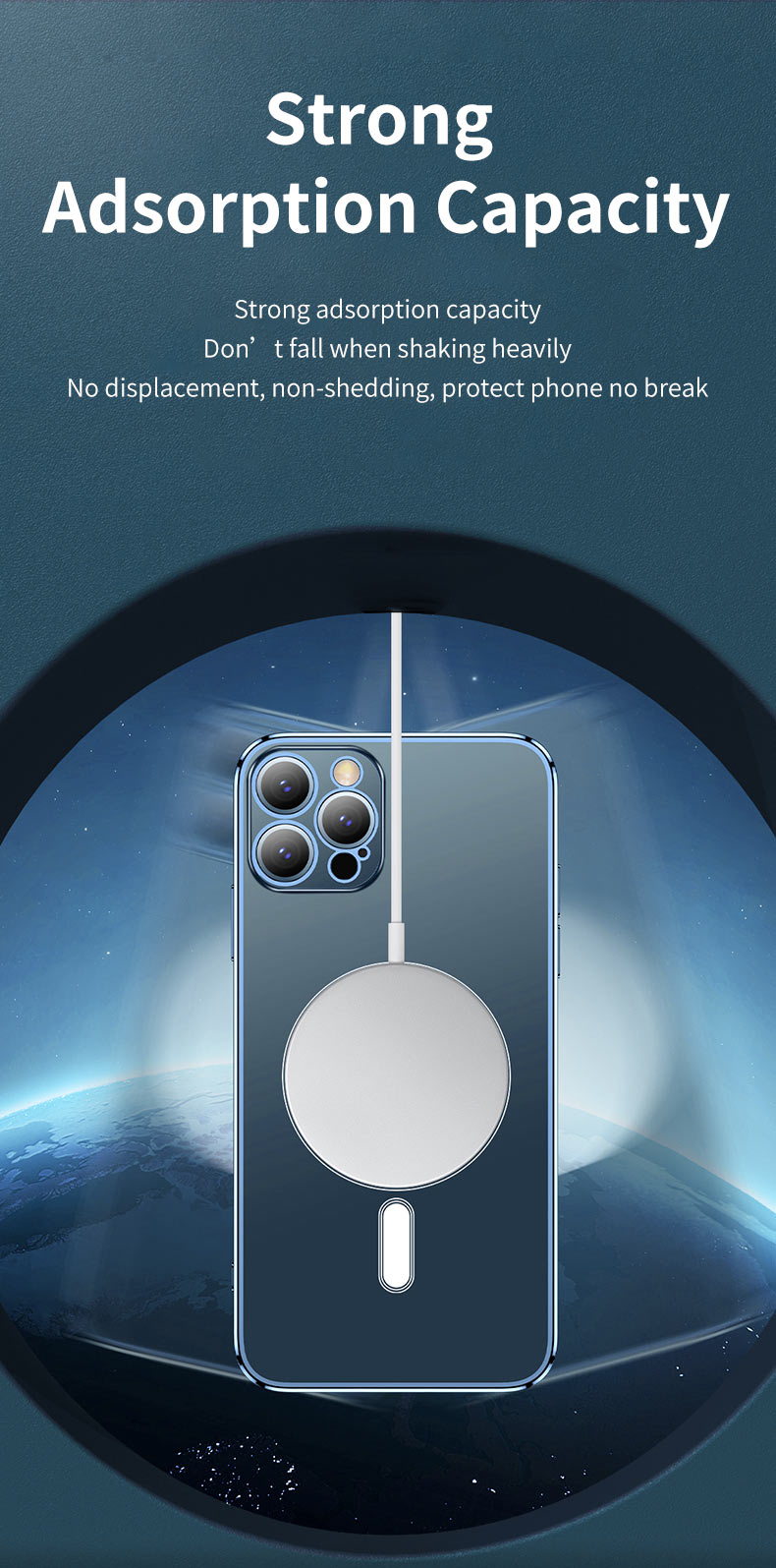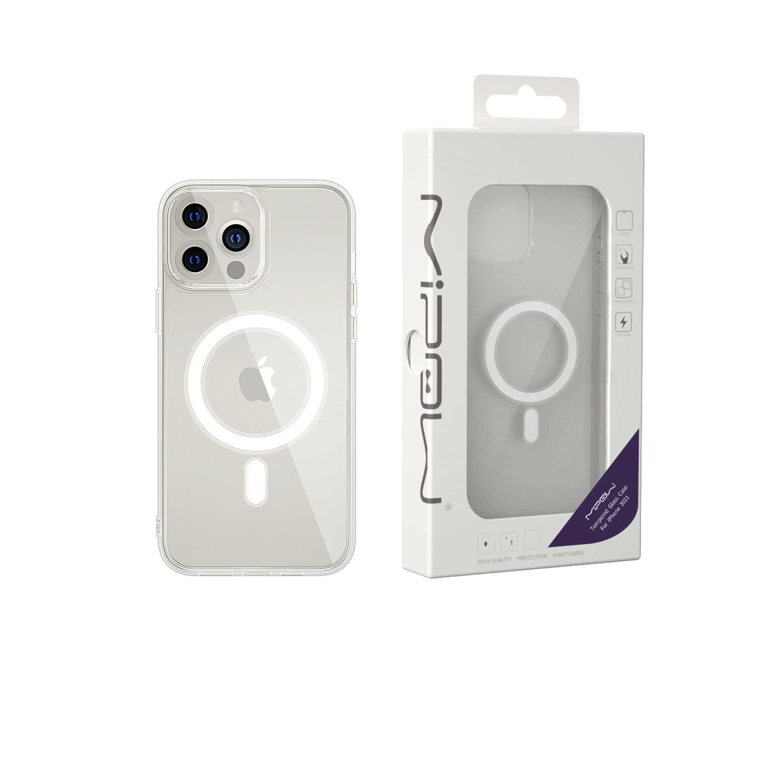 Ốp Mipow Magsafe Tempered Glass trong suốt hỗ trợ sạc không dây Magsafe với vòng tròn nam châm tinh tế phía sau mặt ốp giúp điện thoại hít cứng cáp hơn.