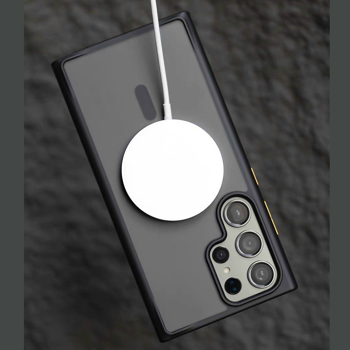 Ốp lưng chống sốc hỗ trợ sạc cho Samsung Galaxy S25 Ultra hỗ trợ sạc từ tính hiệu Likgus PC Ultra-thin Frosted Magnetic Case thiết kế với phần mặt lưng trang bị lớp Nam châm giúp chiếc cho Samsung Galaxy S25 Ultra của bạn được gắn chính xác vào bộ sạc nhanh không dây và bạn nên lưu ý không được bẻ mạnh ốp lưng để tránh ảnh hưởng đến nam châm phía sau nhé