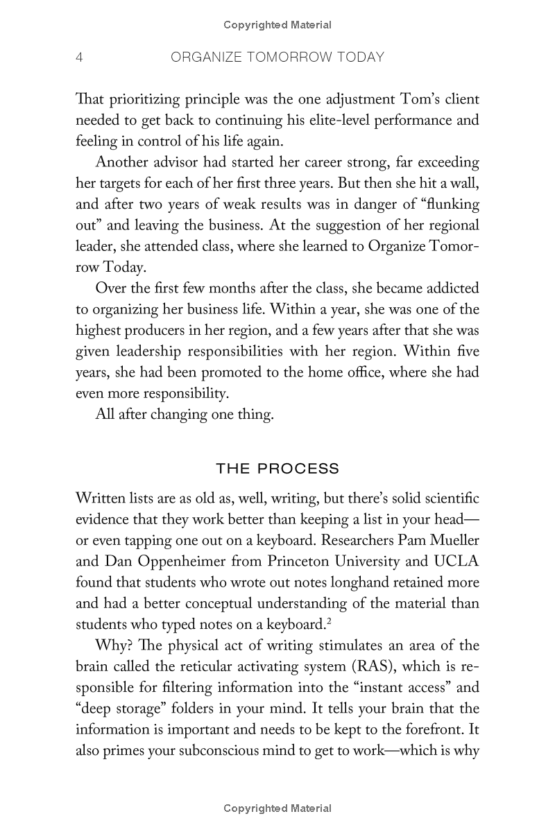 In Organize Tomorrow Today (OTT), two of the top minds in human performance come together to r the pathway to extreme success: Doing more is not the answer, and Selk and Bartow walk you through how to achieve more by doing less.