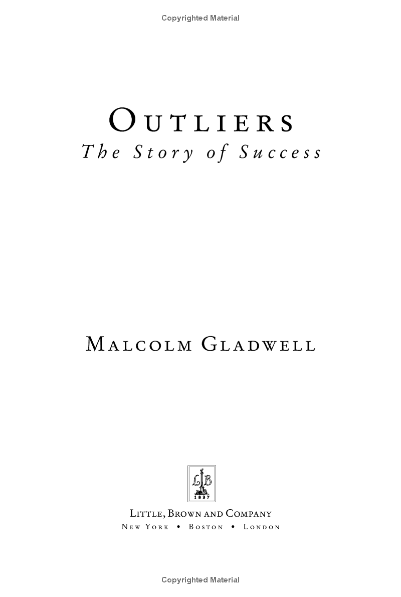 Why are people successful For centuries, humankind has grappled with this question. In this stunning new book, Gladwell takes us on an invigorating intellectual journey to show us what makes an overachiever. He reveals that we pay far too much attention to what successful people are like, and too little attention to where successful people are from: their culture, their family, and their generation. Gladwell examines how the careers of Bill Gates and the performance of world-class football players are alike; what top fighter pilots and The Beatles have in common; and why it is correct to say that the mathematician who solved Fermat's Theorem is not a genius