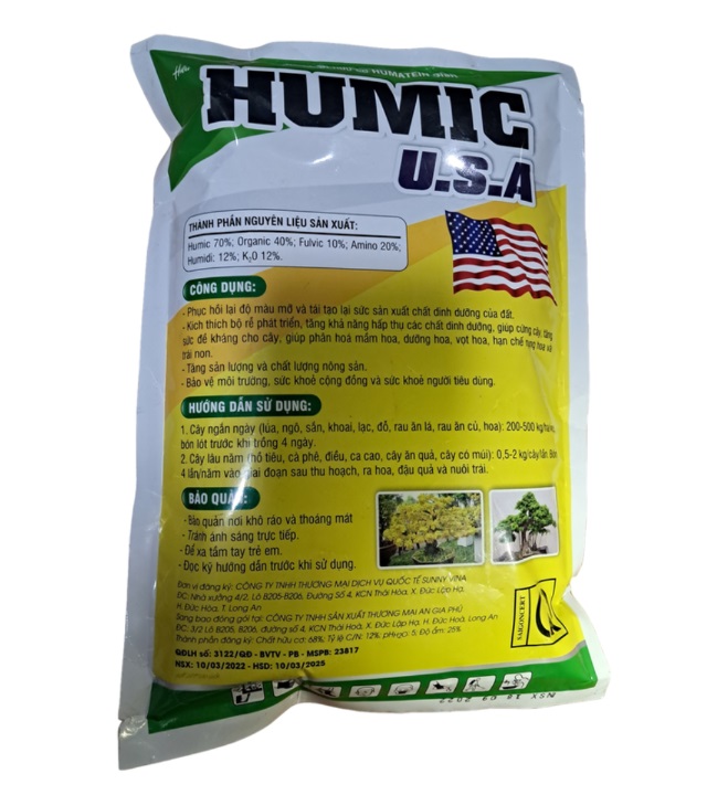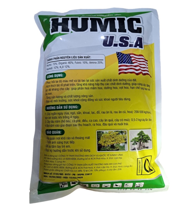 Phân hữu cơ sinh học HUMIC USA phù hợp cho các loại rau, hoa và cây cảnh trồng trong chậu hoặc khay.