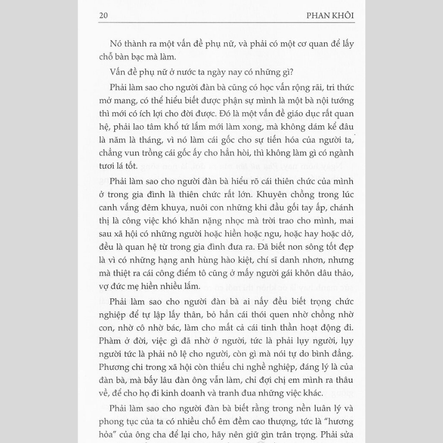 Có thể thấy, những bài viết và tác phẩm của Phan Khôi được tuyển tập trong Phan Khôi: Vấn đề phụ nữ ở nước ta sẽ khơi gợi được nhiều vấn đề ý nghĩa để các nhà nghiên cứu cũng như bạn đọc quan tâm tới lịch sử, văn hóa cùng suy nghĩ và luận bàn.