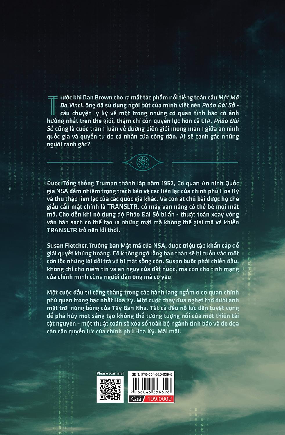 Tác phẩm đầu tay của Dan Brown – Pháo Đài Số là câu chuyện khắc họa một trong những cơ quan tình báo có ảnh hưởng nhất trên thế giới, quyền lực hơn cả CIA. Pháo Đài Số cũng là cuộc tranh luận gay gắt về đường danh giới giữa an ninh quốc gia và quyền tự do cá nhân của công dân. Và còn một câu hỏi đầy trăn trở: Ai sẽ canh gác những người canh gác?