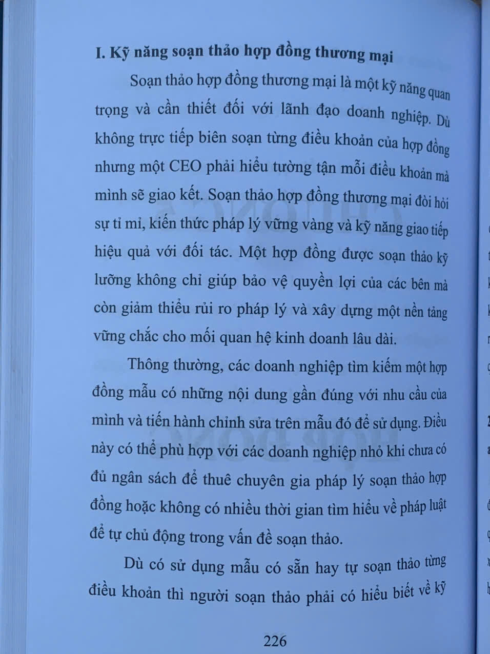 Cuốn sách này không chỉ là tập hợp các quy định pháp lý khô khan, mà còn là cẩm nang chi tiết, được viết bằng ngôn ngữ dễ hiểu, giúp các CEO có thể áp dụng vào thực tiễn công việc hàng ngày. Tác giả tin rằng, dù quý vị là một CEO của một doanh nghiệp lớn hay chủ sở hữu của một startup mới nổi, việc nắm bắt được các kiến thức pháp lý cơ bản là điều không thể thiếu.